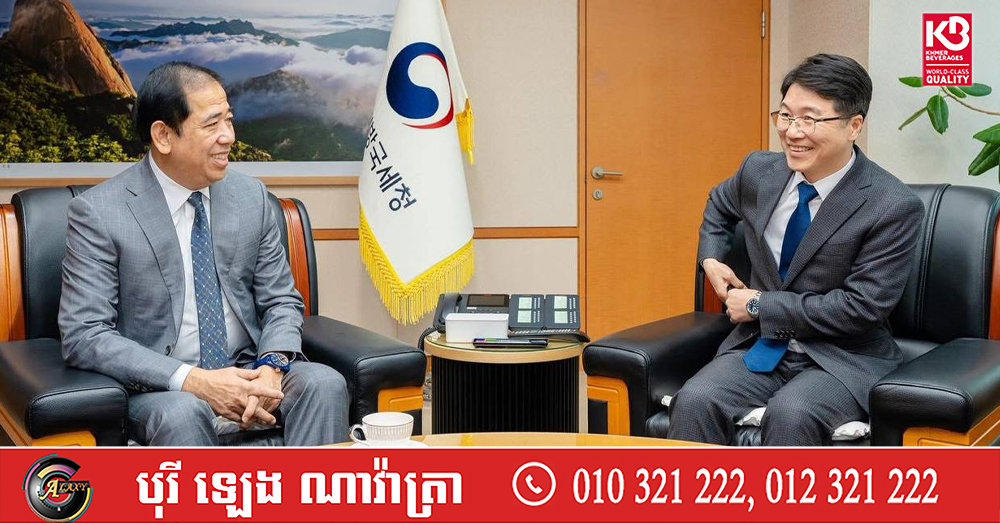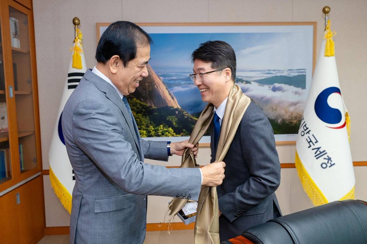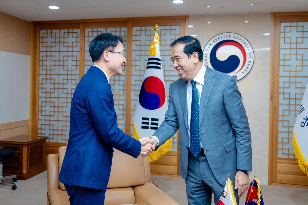 (កូរ៉េខាងត្បូង)៖ លោក គង់ វិបុល រដ្ឋមន្ត្រីប្រតិភូអមនាយករដ្ឋមន្ត្រី និងជាប្រតិភូរាជរដ្ឋាភិបាលទទួលបន្ទុកជាអគ្គនាយកនៃអគ្គនាយកដ្ឋានពន្ធដារ នៅថ្ងៃទី៥ ខែមករា ឆ្នាំ២០២៦ បានចូលជួបសម្ដែងការគួរសមនិងពិភាក្សាការងារជាមួយលោក Kim Jaewong (Commissioner of Seoul Regional Tax Office) ក្នុងដំណើរទស្សនកិច្ចផ្លូវការនៅរដ្ឋបាលសារពើពន្ធនៃសាធារណរដ្ឋកូរ៉េ (National Tax Service of Republic of Korea) នៅ Seoul Regional Tax Office រដ្ឋធានីសេអ៊ូល សាធារណរដ្ឋកូរ៉េ។