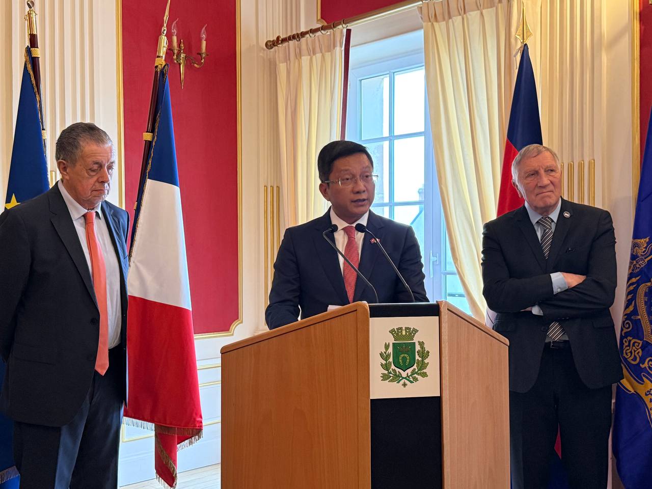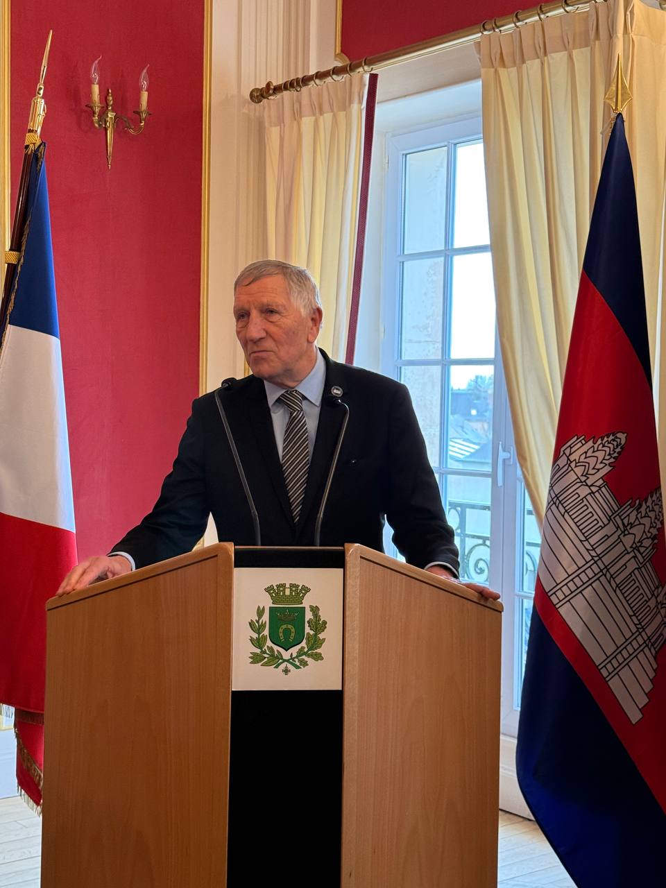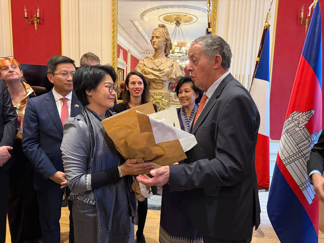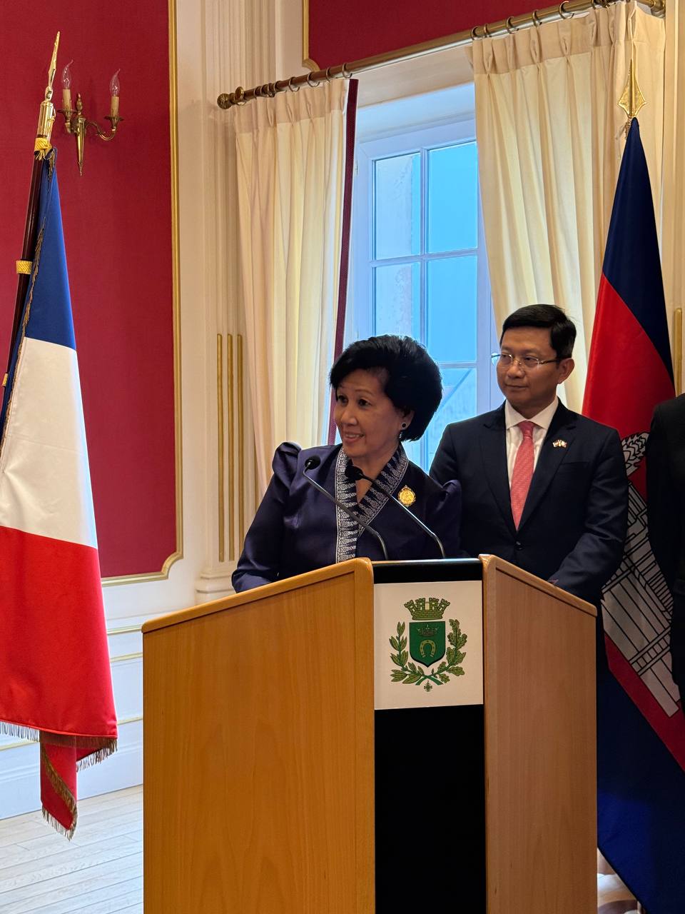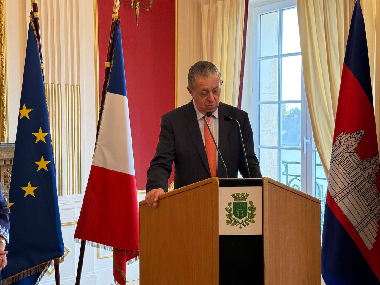 តាងនាម រាជរដ្ឋាភិបាលកម្ពុជា លោកឯកអគ្គរាជទូតបានថ្លែង អំណរគុណ យ៉ាងជ្រាលជ្រៅ ចំពោះរដ្ឋាភិបាល បារាំង ដែលតែង តែស្ថិត នៅជាមួយកម្ពុជាគ្រប់កាលៈទេសៈ ទាំងក្នុងដំណាក់កាលស្វែងរកសន្តិភាព រហូតដល់ ការអភិវឌ្ឍនា ពេលបច្ចុប្បន្ន។