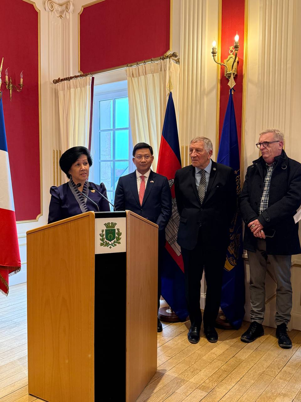 (ភ្នំពេញ)៖ និមិត្តរូបនៃសន្តិភាព និងមិត្តភាពដ៏រឹងមាំរវាងកម្ពុជា និងបារាំង ត្រូវបានចារិកទុកជាថ្មីនៅលើទឹកដីបារាំង តាមរយៈការសម្ពោធជាផ្លូវការនូវ «សួនច្បារនរោត្តម សីហនុ» ស្ថិតក្នុងក្រុង Fère-en-Tardenois ខេត្ត Aisne តំបន់ Hauts-de-France ប្រទេសបារាំង នាថ្ងៃទី៨ ខែមករា ឆ្នាំ ២០២៦។