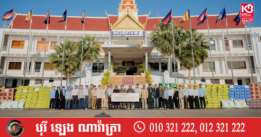 (បន្ទាយមានជ័យ)៖ ក្រោមស្មារតីរួមគ្នាជម្នះការលំបាករបស់ជាតិព្រោះសង្គ្រាមឈ្លានពានពីសំណាក់កងទ័ពថៃ, លោក សុខ សុកេន រដ្ឋមន្ត្រីក្រសួងអធិការកិច្ច និងលោកស្រី ចម ក្រស្នា បានផ្តល់អំណោយជាស្បៀងអាហារ និងសម្ភារៈប្រើប្រាស់នានា ជូនទៅដល់រដ្ឋបាលខេត្តបន្ទាយមានជ័យ ទុកចាត់ចែងជូនដល់ជនភៀសសឹក និងវីរៈកងទ័ព។