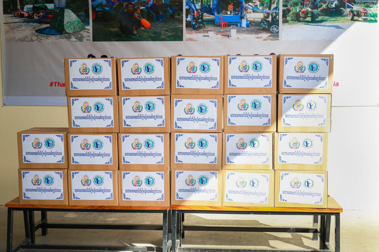 សម្រាប់គ្រឿងឧបភោគបរិភោគ ដែលប្រគល់ជូន មន្ទីរអភិវឌ្ឍន៍ជនបទខេត្តឧត្តរមានជ័យ រួមមាន៖ សាច់ក្រក និងត្រីងៀត (ឆ្អិន) ចំនួន ៤២០កញ្ចប់, សាច់ក្រក និងត្រីងៀត (ឆ្អិន) ចំនួន ១៦កញ្ចប់, អំបុកលាយសាច់ក្រក និងសាច់ជ្រូកផាត់ ចំនួន ១៣២កញ្ចប់ គឺសម្រាប់យកទៅឧបត្ថម្ភគាំទ្រដល់វីរកងទ័ពជួរមុខកម្ពុជាដែលកំពុងឈរជើងយ៉ាងរឹងមាំក្នុងការការពារបូរណភាពទឹកដីនៃព្រះរាជាណាចក្រកម្ពុជា នៅតាមបណ្ដោយព្រំដែលកម្ពុជា-ថៃ ក្នុងខេត្តឧត្តរមានជ័យ៕
