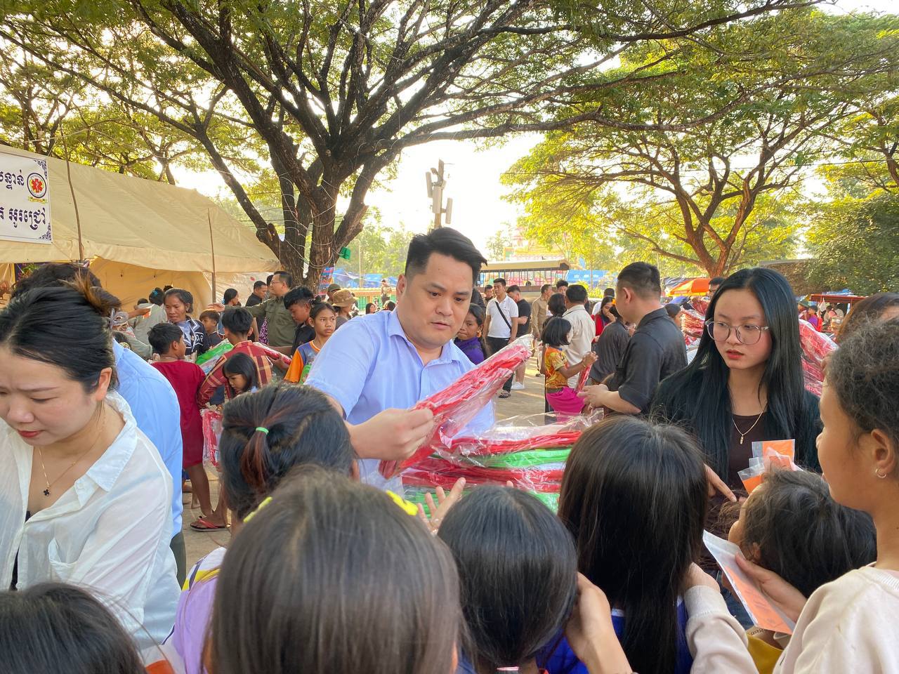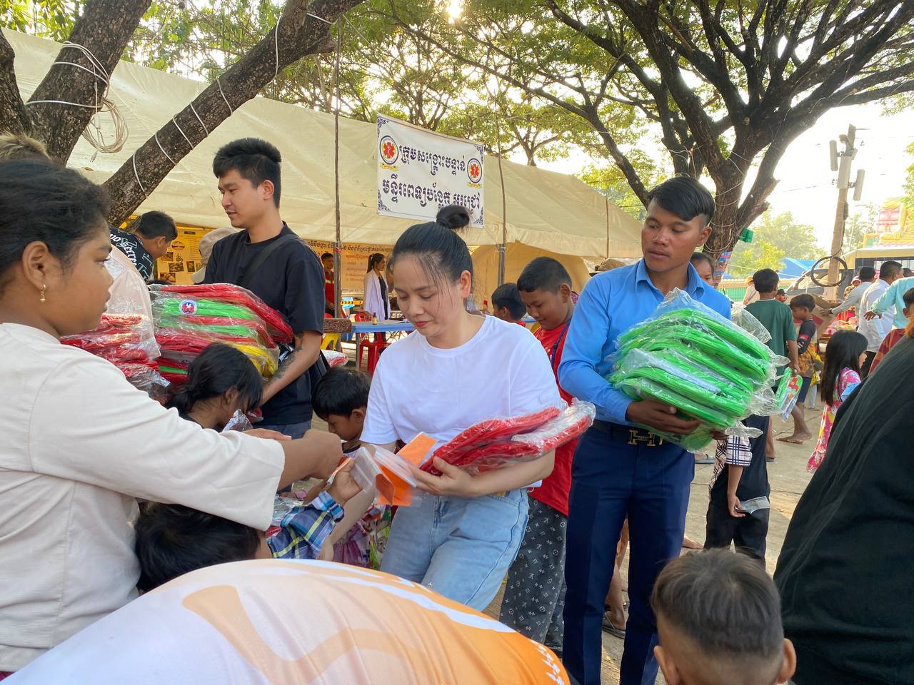 ជាមួយគ្នានោះ លោកបណ្ឌិត ប៉ាន់ខែម ប៊ុនថន និងសប្បុសជនបាននាំយកសម្ភារសិក្សារួមមាន កាតាប សៀវភៅ ប៊ិច ខ្មៅដៃ ជ័រលុប បន្ទាត់ និងថវិកា ចែកជូនក្មួយៗកុមារសិស្សានុសិស្សាជាង១ពាន់នាក់ នៅក្នុងមណ្ឌលភៀសសឹក ស្រុកអូរជ្រៅ ខេត្តបន្ទាយមានជ័យផ្ទាល់៕