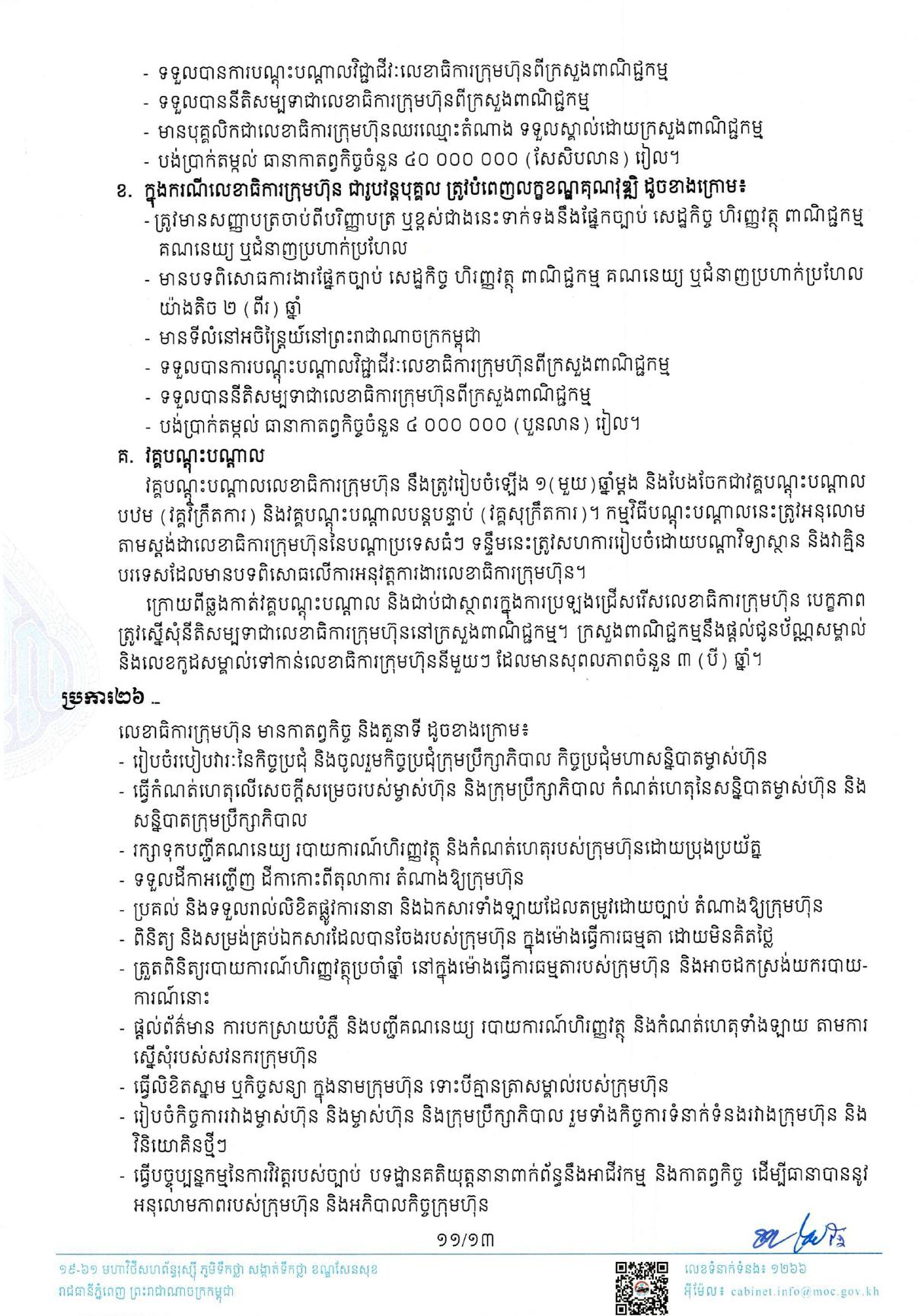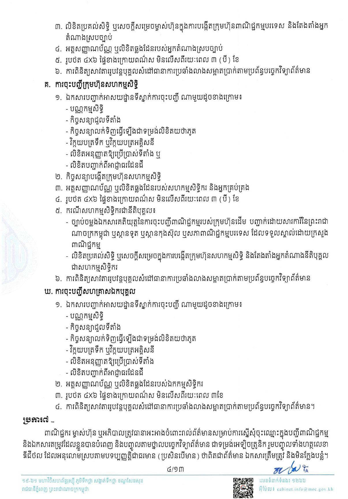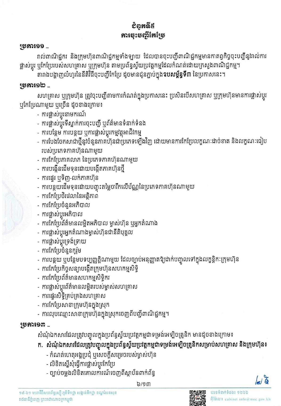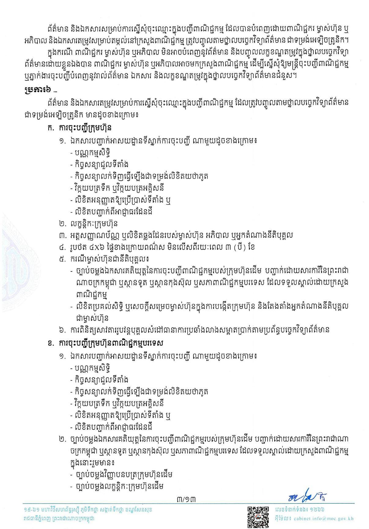 (ភ្នំពេញ)៖ ក្រសួងពាណិជ្ជកម្ម នៅថ្ងៃទី១១ ខែមករា ឆ្នាំ២០២៦នេះ បានចេញសេចក្តីប្រកាស ស្ដីពី ការធ្វើសាមញ្ញកម្មនៃការងារចុះបញ្ជីពាណិជ្ជកម្ម។