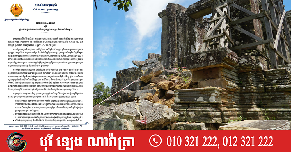 ក្រសួងវប្បធម៌ បង្ហាញស្ថានភាពខូចខាត នៅរមណីយដ្ឋានប្រាសាទព្រះវិហារ (Video inside)