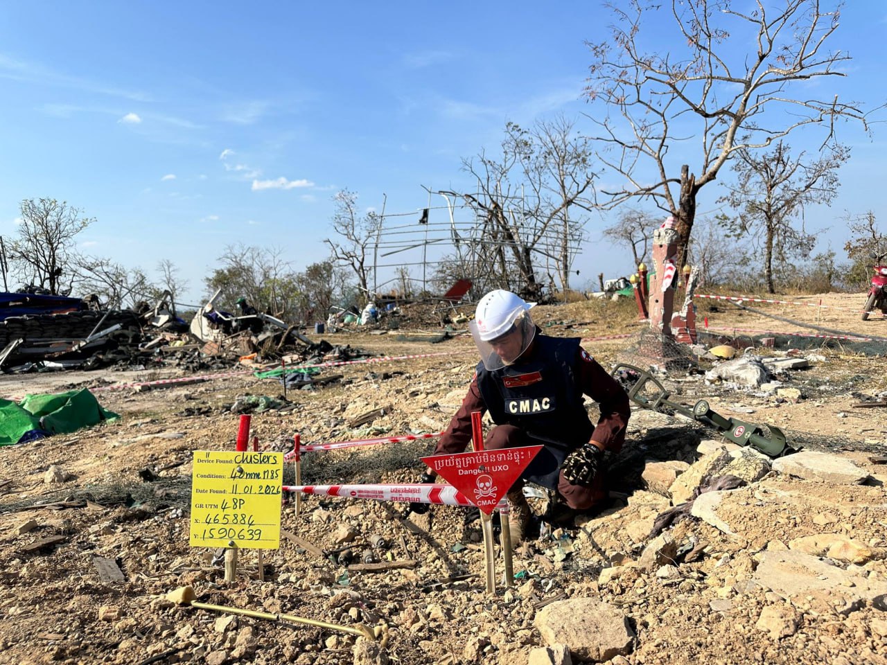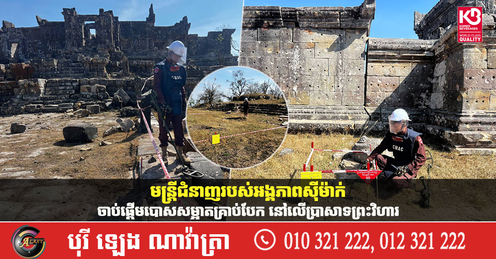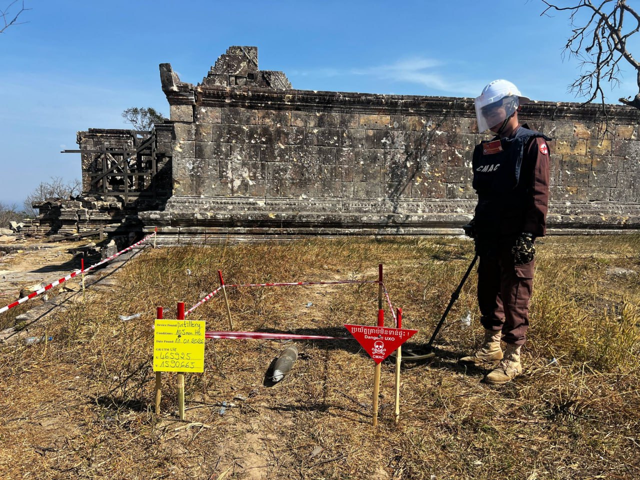 មន្ត្រីជំនាញរបស់អង្គភាពស៉ីម៉ាក់ ចាប់ផ្តើមបោសសម្អាតគ្រាប់បែក នៅលើប្រាសាទព្រះវិហារ