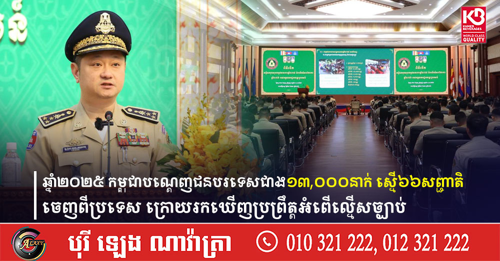 ឆ្នាំ២០២៥ កម្ពុជាបណ្ដេញជនបរទេសជាង១៣,០០០នាក់ ស្មើ៦៦សញ្ជាតិ ចេញពីប្រទេស ក្រោយរកឃើញប្រព្រឹត្តអំពើល្មើសច្បាប់
