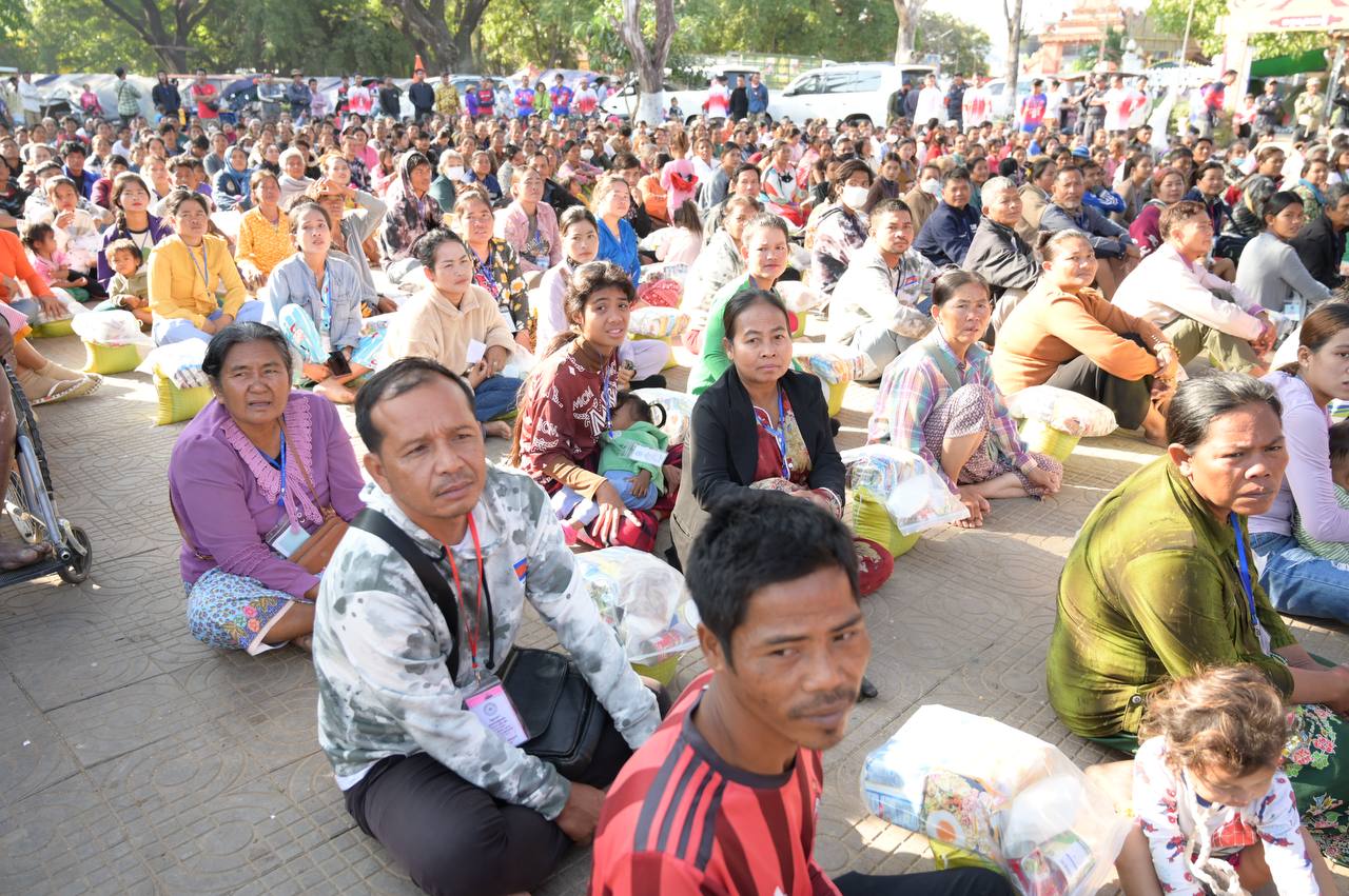 សម្ភារៈ និងគ្រឿងឧបភោគបរិភោគរួមមាន, អង្ករទំងន់ ៥គីឡូក្រាម ៥០០កញ្ចប់, ឃីត ៥០០កញ្ចប់ មានមីជាតិ១២កញ្ចប់ ត្រីខ ២កំប៉ុង ទឹកដោះ១កំប៉ុង ស្ករសកន្លះគីឡូក្រាម, ទឹកត្រី ៥០យួរ, ទឹកស៊ីអ៊ីវ ៥០យួរ, ទឹកក្រូច, ទឹកសុទ្ធ, សាប៊ូ, បន្លែមួយចំនួនធំ, សម្លរ២មុខ ក្នុងមួយគ្រួសារ និងថវិកាសរុបរួមចំនួន ១០លានរៀល៕