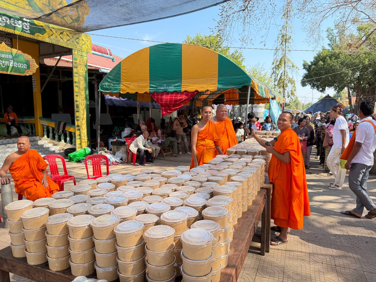 (កណ្ដាល)៖ ព្រះវិចិត្រសត្ថា យឿន យ៉ន ព្រះរាជាគណៈកិត្តយស ព្រះអនុគណស្រុកខ្សាច់កណ្តាល តំណាងដ៏ខ្ពង់ខ្ពស់សម្តេចព្រះឧត្តមមុនី ជា សំអាង ព្រះមេគណខេត្តកណ្ដាល នៅថ្ងៃទី១២ ខែមករា ឆ្នាំ២០២៦ បានដឹកនាំមន្រ្តីសង្ឃសាលាអនុគណស្រុកខ្សាច់កណ្ដាល ដោយមានការនិមន្តចូលរួម ព្រះពលកោសល ហួន សេងហាក់ និងព្រះសមណៈសោភ័ណ្ឌ ហៀង ប៊ុនធន និងព្រះមន្ត្រីសង្ឃស្រុកល្វាឯម និមន្តនាំយកគ្រឿងឧបភោគបរិភោគ និងសំភារៈប្រើប្រាស់សម្រាប់ចាត់ចែងសម្រួលការលំបាករបស់ញាតិញោមភៀសសឹកចំនួន ៥០០គ្រួសារ នៅមណ្ឌលភៀសសឹកវត្តស្វាយថ្មី ហៅវត្តតាហី សង្កាត់កំពង់ស្វាយ ក្រុងសិរីសោភ័ណ្ឌ ខេត្តបន្ទាយមានជ័យ។
