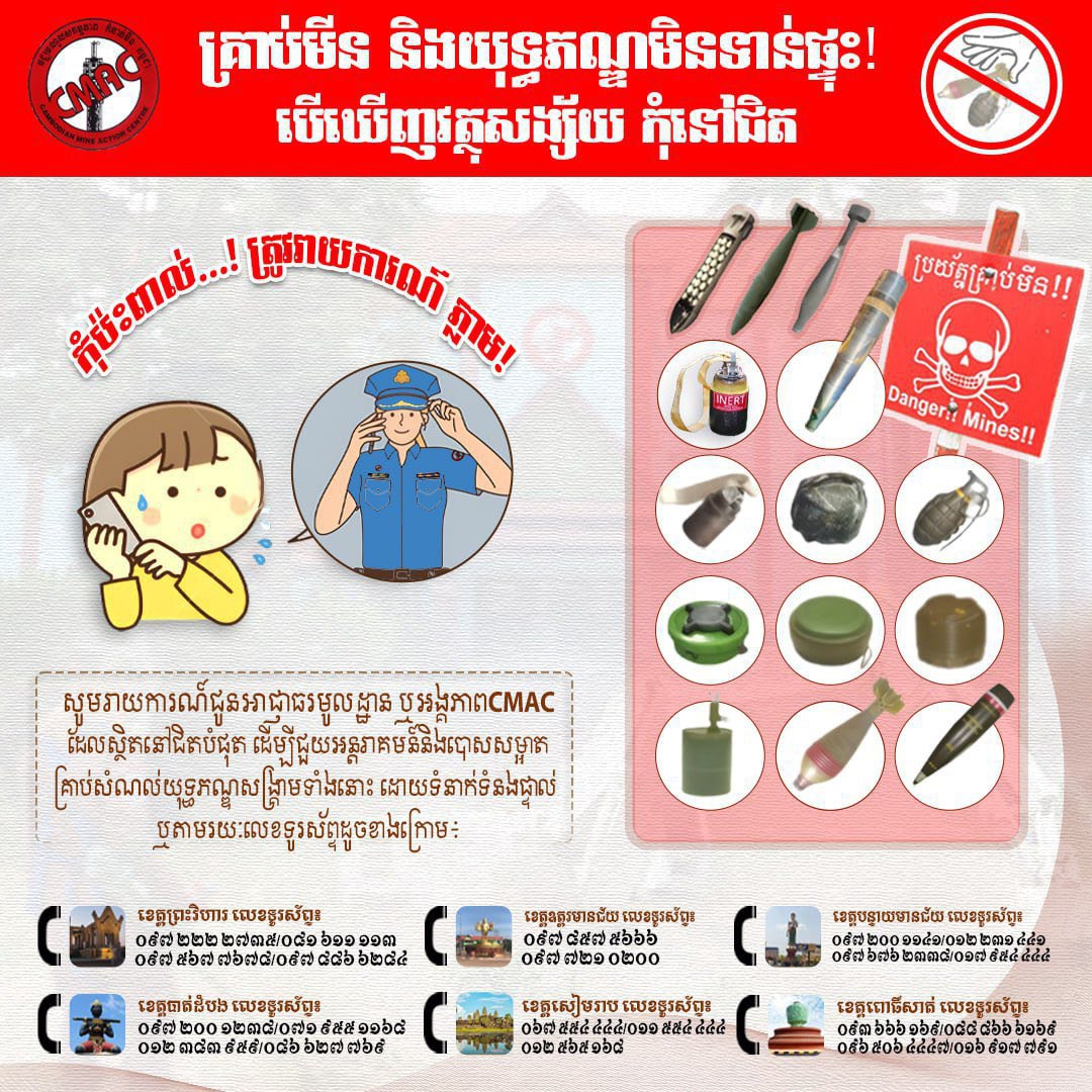 ការអំពាវនាវនេះ ធ្វើឡើងបន្ទាប់ពីកងកម្លាំងអង្គភាពស៉ីម៉ាក់ បានចុះបោសសម្អាតគ្រាប់សំណល់សង្គ្រាម រកឃើញគ្រាប់បែកចង្កោមយ៉ាងច្រើន។
