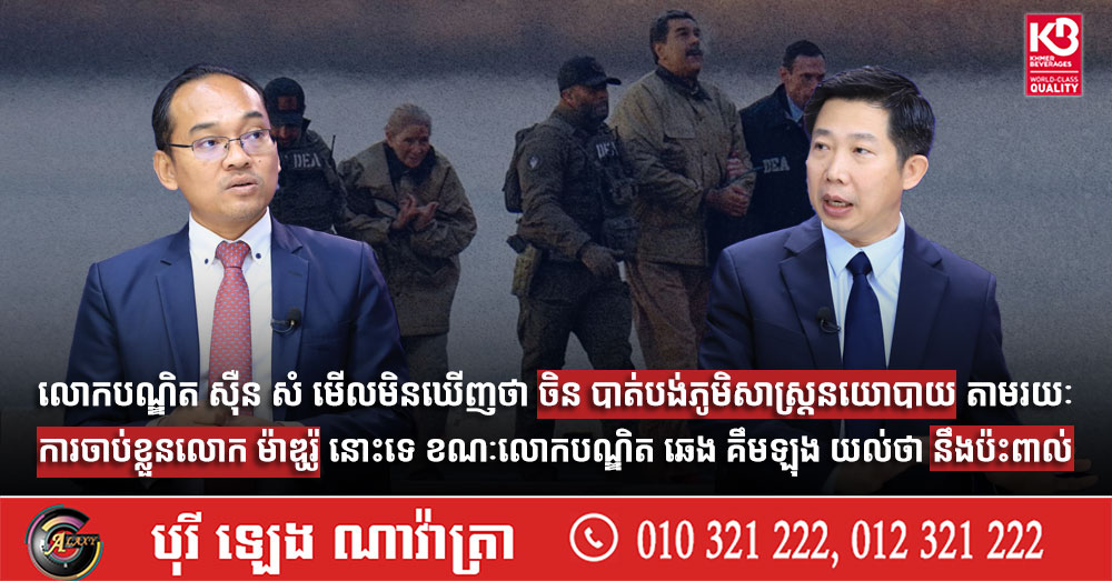 (ភ្នំពេញ)៖ អ្នកជំនាញវិទ្យាសាស្ត្រនយោបាយ លោកបណ្ឌិត ស៊ឺន សំ បានអះអាងថា ចិន នឹងមិនបាត់បង់ប្រទេសវេណេស៊ុយអេឡា ដែលជាដៃគូយុទ្ធសាស្ត្រដ៏សំខាន់របស់ខ្លួនឡើយ បើទោះបីសហរដ្ឋអាមេរិក ចាប់ខ្លួនលោក នីកូឡាស ម៉ាឌូរ៉ូ ប្រធានាធិបតីនៃប្រទេសវេណេស៊ុយអេឡា ក៏ដោយ។