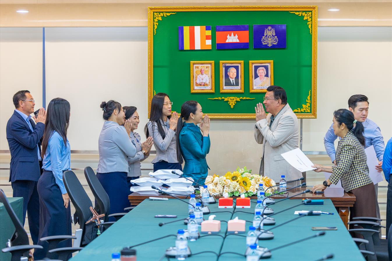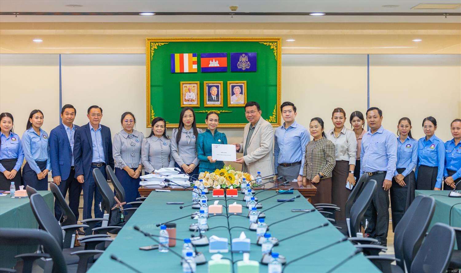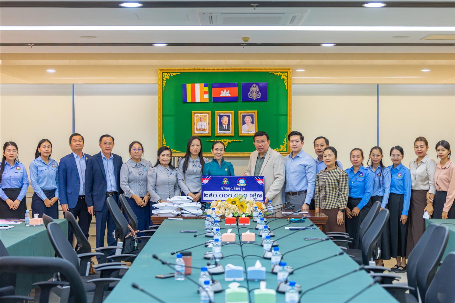 (ភ្នំពេញ)៖ លោកស្រី ហូ សុវណ្ណិកា រដ្ឋលេខាធិការ និងជាអនុប្រធានកិត្តិយសក្រុមការងារសហភាពសហព័ន្ធយុវជនកម្ពុជា ក្នុងវិស័យអភិវឌ្ឍន៍ជនបទ តំណាងដ៏ខ្ពង់ខ្ពស់ លោក ឆាយ ឫទ្ធិសែន រដ្ឋមន្ដ្រីក្រសួងអភិវឌ្ឍន៍ជនបទ និងជាប្រធានកិត្តិយសក្រុមការងារសហភាពសហព័ន្ធយុវជនកម្ពុជា ក្នុងវិស័យអភិវឌ្ឍន៍ជនបទ នារសៀលថ្ងៃទី១២ ខែមករា ឆ្នាំ២០២៦នេះ បាននាំយកថវិកាចំនួន ២៥០លានរៀល ដែលទទួលបានពីការបរិច្ចាគរបស់ លោក ឆាយ ឫទ្ធិសែន រួមជាមួយថ្នាក់ដឹកនាំ,មន្ត្រីរាជការ, ក្រុមការងារ ស.ស.យ.ក. ក្នុងវិស័យអភិវឌ្ឍន៍ជនបទ, សាខាសមាគមនារីកម្ពុជាដើម្បីសន្តិភាពនិងអភិវឌ្ឍន៍ នៃក្រសួងអភិវឌ្ឍន៍ជនបទ ព្រមទាំងសប្បុរសជននានា ជូនមូលនិធិកងទ័ពរបស់សម្តេចតេជោ និងសម្តេចធិបតី ដើម្បីជួយដល់វីរកងទ័ពជួរមុខ គ្រួសារវីរកងទ័ព និងជនភៀសសឹក។