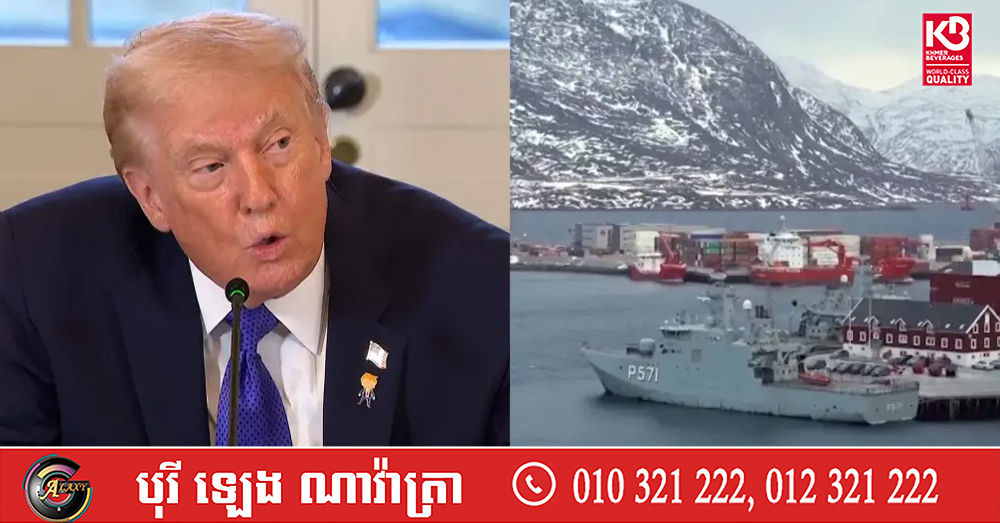(វ៉ាស៊ីនតោន)៖ ប្រធានាធិបតីអាមេរិក លោក ដូណាល់ ត្រាំ បានប្រកាសនៅថ្ងៃអាទិត្យនេះថា សហរដ្ឋអាមេរិកនឹងយកកោះហ្គ្រីនឡែន (Greenland) «ទោះតាមវិធីណាក៏ដោយ» ដោយព្រមានថា ប្រសិនបើទីក្រុងវ៉ាស៊ីនតោនមិនធ្វើសកម្មភាពទេ នោះរុស្ស៊ី និងចិននឹង «ចូលកាន់កាប់» មិនខាន។ នេះបើតាមការចេញផ្សាយ ដោយទីភ្នាក់ងារសារព័ត៌មាន Reuters។