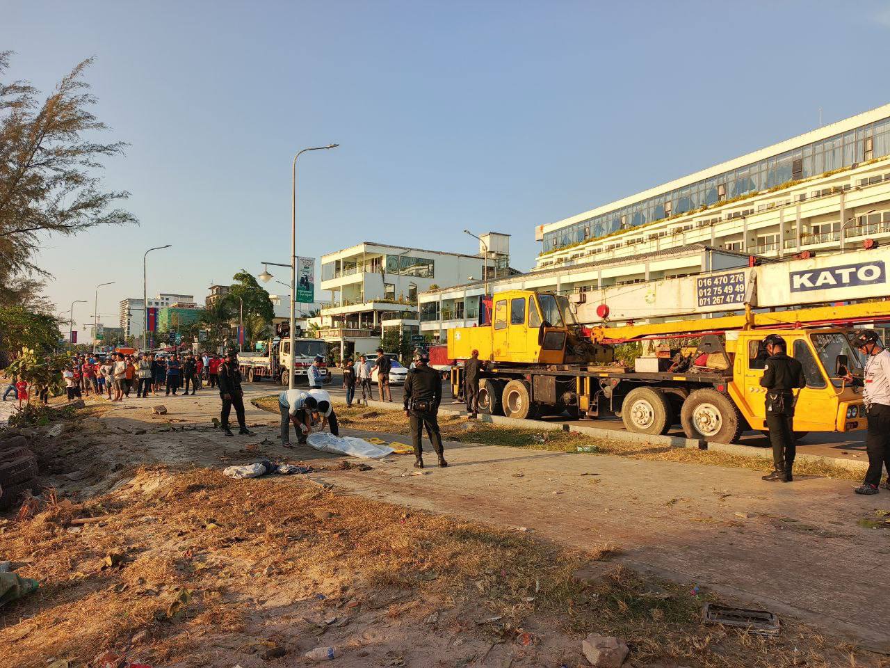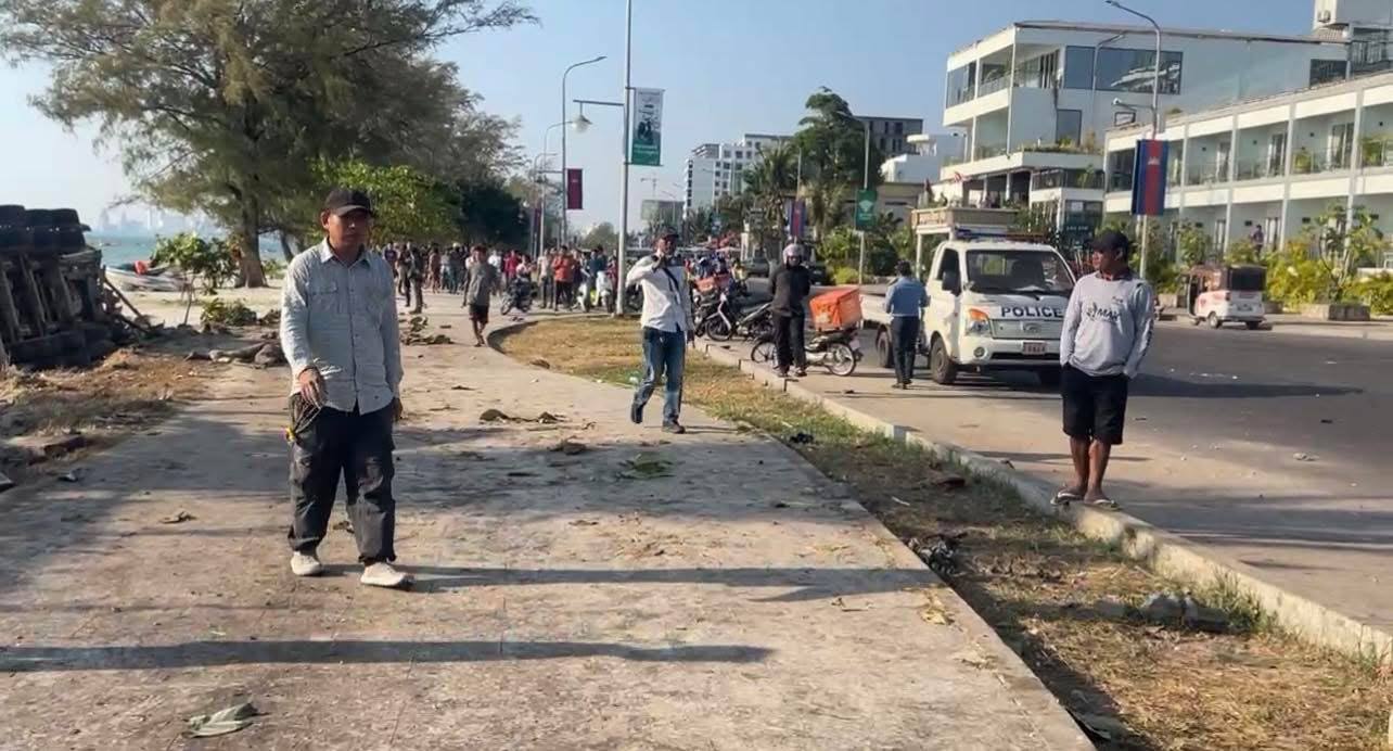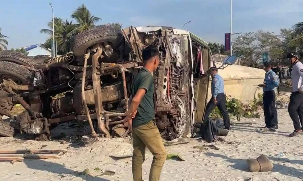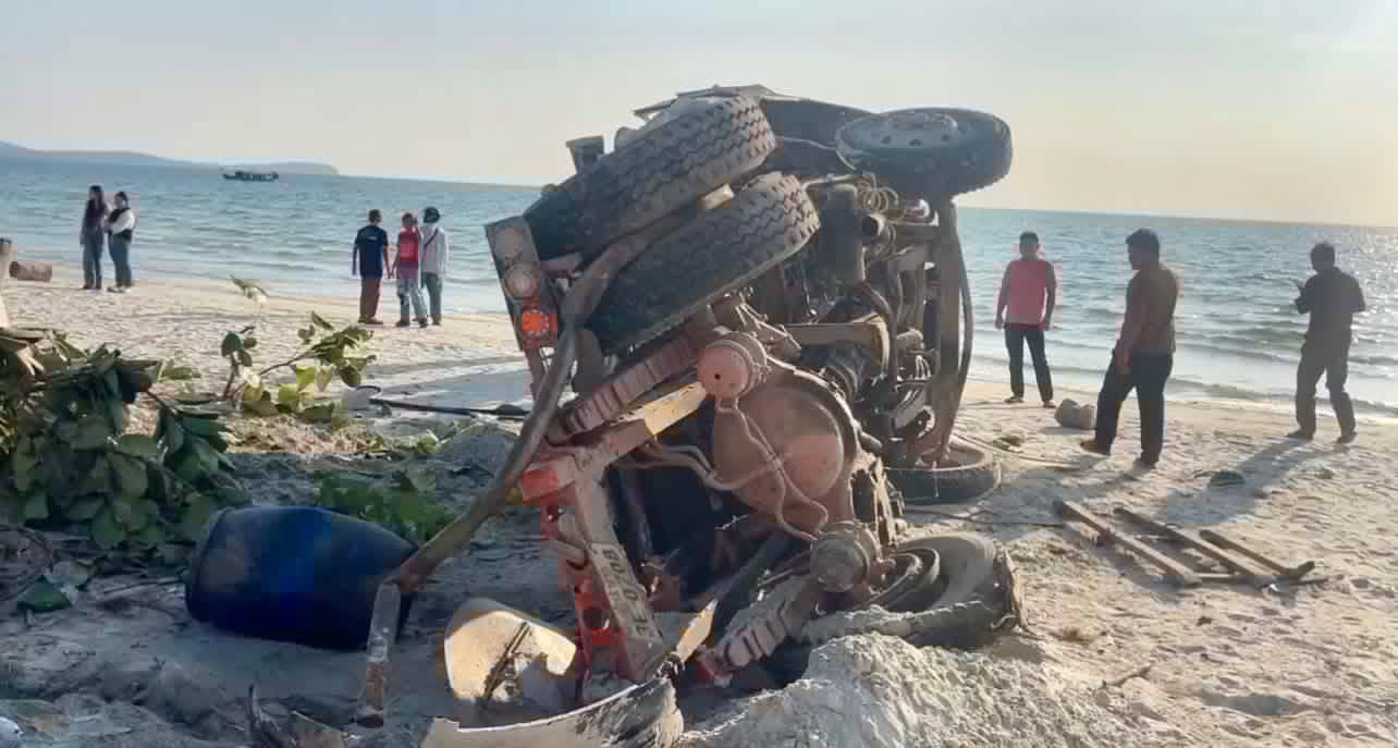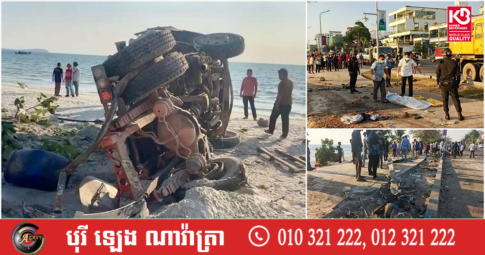 (ព្រះសីហនុ)៖ រថយន្តដឹកសុីម៉ង់ត៍មួយគ្រឿងបុករះ រួចក្រឡាប់ទៅលើដីឆ្នេរសមុទ្រ បណ្តាលឲ្យមានមនុស្សស្លាប់ និងរបួសព្រមទាំងខូចខាតយានយន្តច្រើនគ្រឿងទៀត ខណៈជនបង្កកំពុងឃាត់ខ្លួន នៅផ្លូវចុងឆ្នេរអូរត្រេះ ខេត្តព្រះសីហនុ។