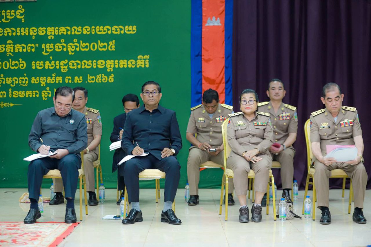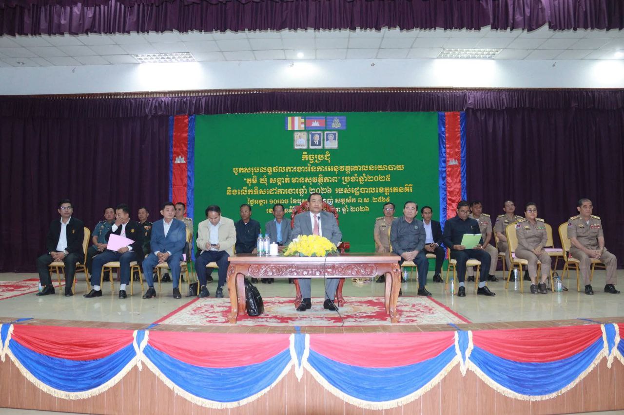 (រតនគិរី)៖ រដ្ឋបាលខេត្តរតនគិរី នៅព្រឹកថ្ងៃទី១៣ ខែមករា ឆ្នាំ២០២៦ បានរៀបចំកិច្ចប្រជុំបូកសរុបលទ្ធផលការងារ នៃការអនុវត្តគោលនយោបាយ «ភូមិ ឃុំ សង្កាត់ មានសុវត្ថិភាព» ប្រចាំឆ្នាំ២០២៥ និងលើកទិសដៅការងារ ឆ្នាំ២០២៦ របស់រដ្ឋបាលខេត្ត នៅសាលមហោស្រពរតនៈ ក្រោមអធិបតីភាព លោក ប៉ាវ ហមផាន រដ្ឋលេខាធិការក្រសួងមហាផ្ទៃ និងមានការអញ្ជើញចូលរួម ពីសំណាក់លោក ណាប់ ប៊ុនហេង ប្រធានក្រុមប្រឹក្សាខេត្ត និងលោក ញ៉ែម សំអឿន អភិបាលខេត្តរតនគិរី ព្រមទាំងមានការចូលរួមផងដែរ ពីអាជ្ញាធរក្រុង-ស្រុក ឃុំ-សង្កាត់ មន្ទីរជុំវិញខេត្ត និងកងកម្លាំងមានសមត្ថកិច្ចជាច្រើនរូប។