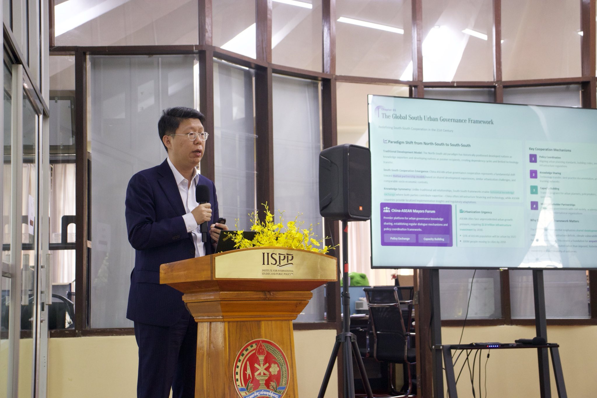 វេទិកា «កិច្ចសហប្រតិបត្តិការសកលភាគខាងត្បូង និងទំនាក់ទំនងចិន-អាស៊ាន៖ ទស្សនៈពីប្រទេសចិន និងកម្ពុជា» ធ្វើឡើងដើម្បីផ្តោតលើគោលនយោបាយ ដើម្បីពិនិត្យមើលពីរបៀបដែលកិច្ចសហប្រតិបត្តិការសកលភាគខាងត្បូងត្រូវបានយល់ និងអនុវត្តតាមរយៈអន្តរកម្មនៃវិធីសាស្រ្តរបស់ចិន និងបទពិសោធន៍របស់កម្ពុជានៅក្នុងក្របខ័ណ្ឌចិន-អាស៊ាន។