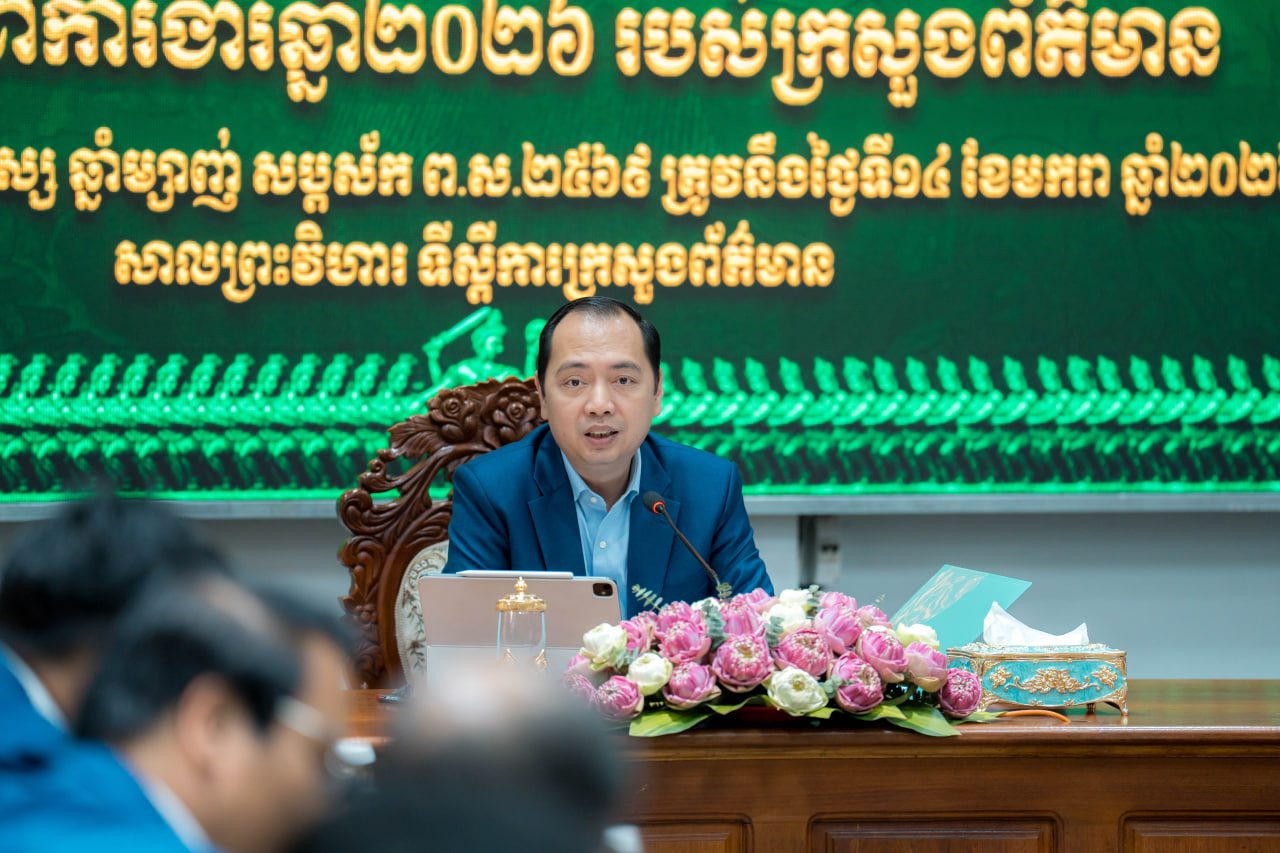 (ភ្នំពេញ)៖ លោក នេត្រ ភក្ត្រា រដ្ឋមន្ត្រីក្រសួងព័ត៌មាន នៅរសៀលថ្ងៃទី១៤ ខែមករា ឆ្នាំ២០២៦នេះ បានអញ្ជើញជាអធិបតីភាព ដឹកនាំកិច្ចប្រជុំបូកសរុបការងារត្រៀមរៀបចំសន្និបាតប្រចាំឆ្នាំ២០២៥ និងលើកទិសដៅការងារឆ្នាំ២០២៦ របស់ក្រសួងព័ត៌មាន។ កិច្ចប្រជុំនេះធ្វើឡើងនៅសាលប្រជុំព្រះវិហារ។