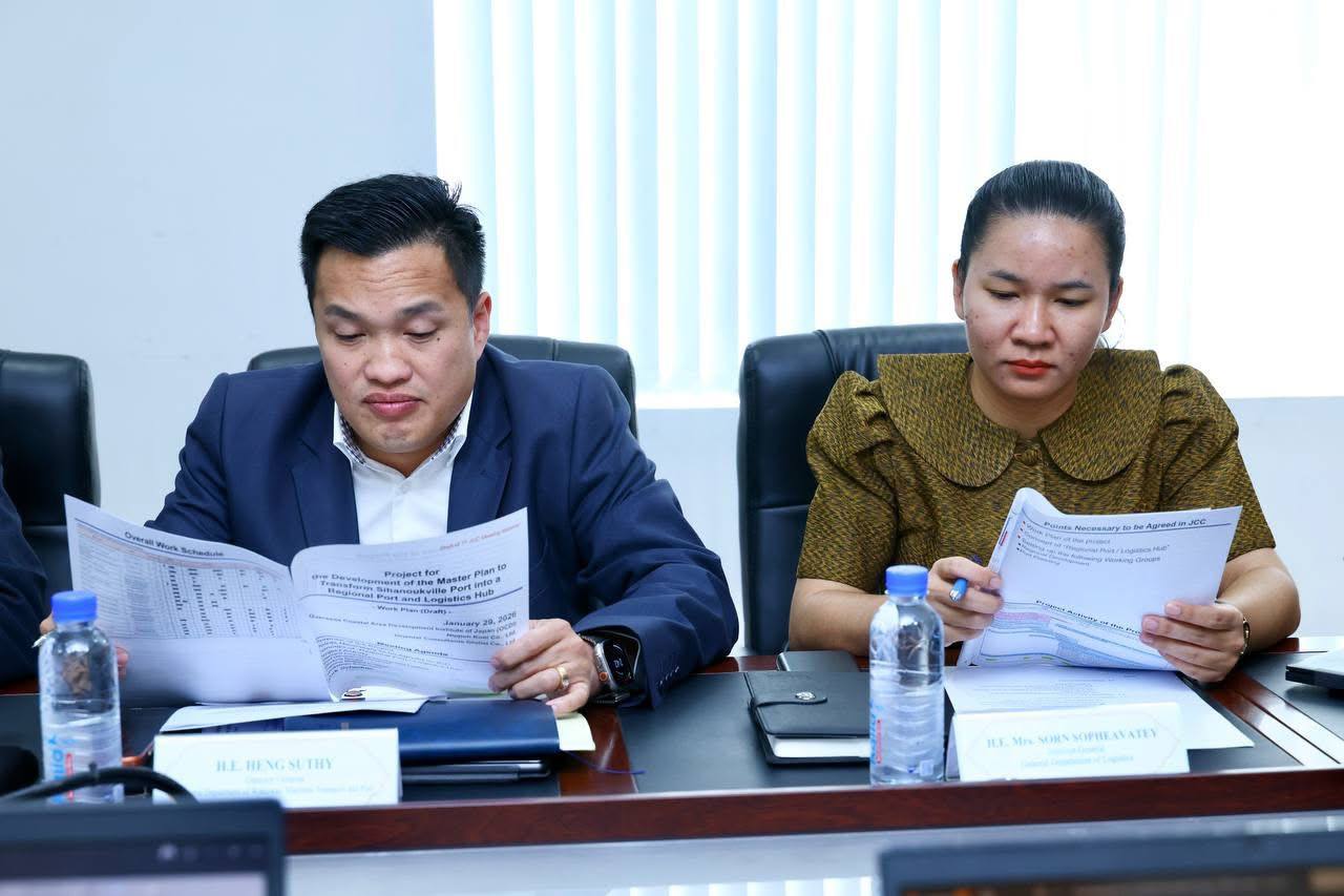 (ភ្នំពេញ)៖ លោកស្រី កុយ សុដានី រដ្ឋលេខាធិការប្រចាំការក្រសួងសាធារណការ និងដឹកជញ្ជូន នារសៀលទី១៤ ខែមករា ឆ្នាំ២០២៦ បានអនុញ្ញាតឱ្យក្រុមជំនាញការនៃក្រុមហ៊ុនទីប្រឹក្សាបច្ចេកទេសជប៉ុន របស់គម្រោងអភិវឌ្ឍន៍ផែនការមេ ដើម្បីប្រែក្លាយកំពង់ផែក្រុងព្រះសីហនុ ទៅជាកំពង់ផែ និងមជ្ឈមណ្ឌលឡូជីស្ទីកថ្នាក់តំបន់ និងក្រុមជំនាញការទីភ្នាក់ងារសហប្រតិបត្តិការអន្តរជាតិជប៉ុន (JICA) ដឹកនាំដោយលោក KOICHI MIYAKE ប្រធានវិទ្យាស្ថានអភិវឌ្ឍន៍តំបន់ឆ្នេរសមុទ្រក្រៅ ប្រទេសនៃប្រទេសជប៉ុន (OCDI) ចូលជួបសម្តែងការគួរសម និងពិភាក្សាការងារ ដោយមានការចូលរួមពីថ្នាក់ដឹកនាំក្រសួង និងមន្ត្រីជំនាញបច្ចេកទេសពាក់ព័ន្ធជាច្រើនរូប។