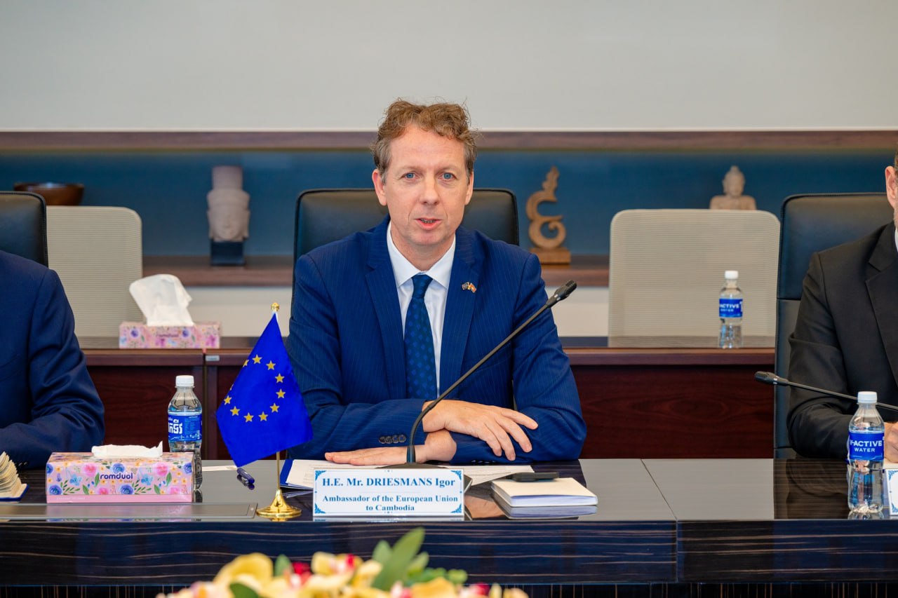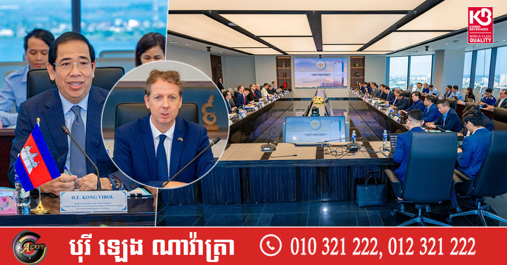 (ភ្នំពេញ)៖ លោក គង់ វិបុល រដ្ឋមន្ត្រីប្រតិភូអមនាយករដ្ឋមន្ត្រី និងជាអគ្គនាយកនៃអគ្គនាយកដ្ឋានពន្ធដារ និងលោក IGOR DRIESMANS ឯកអគ្គរដ្ឋទូតសហភាពអឺរ៉ុបប្រចាំនៅកម្ពុជា បានជួបពិភាក្សាអំពីការអនុវត្តគម្រោងគាំទ្រការងារកែទម្រង់ពន្ធដារ «Twinning» ក្រោមកិច្ចព្រមព្រៀងហិរញ្ញប្បទានឥតសំណងរវាង រាជរដ្ឋាភិបាលកម្ពុជា និងសហភាពអឺរ៉ុប (EU) ដើម្បីគាំទ្រកម្មវិធីកែទម្រង់ការគ្រប់គ្រងហិរញ្ញវត្ថុសាធារណៈ (PFM) ដំណាក់កាលទី៤។