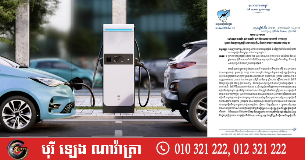 (ភ្នំពេញ)៖ អាជ្ញាធរអគ្គិសនីកម្ពុជា បានចេញលិខិតប្រាប់ដល់អ្នកកាន់អាជ្ញាបណ្ណ ធ្វើសេវាកម្មអគ្គិសនីនៅកម្ពុជា ជំរុញការអភិវឌ្ឍស្ថានីយបញ្ចូលថាមពលយានយន្តអគ្គិសនី និងជំរុញកំណើន នៃការប្រើប្រាស់យានយន្តអគ្គិសនី នៅក្នុងប្រទេសកម្ពុជា។