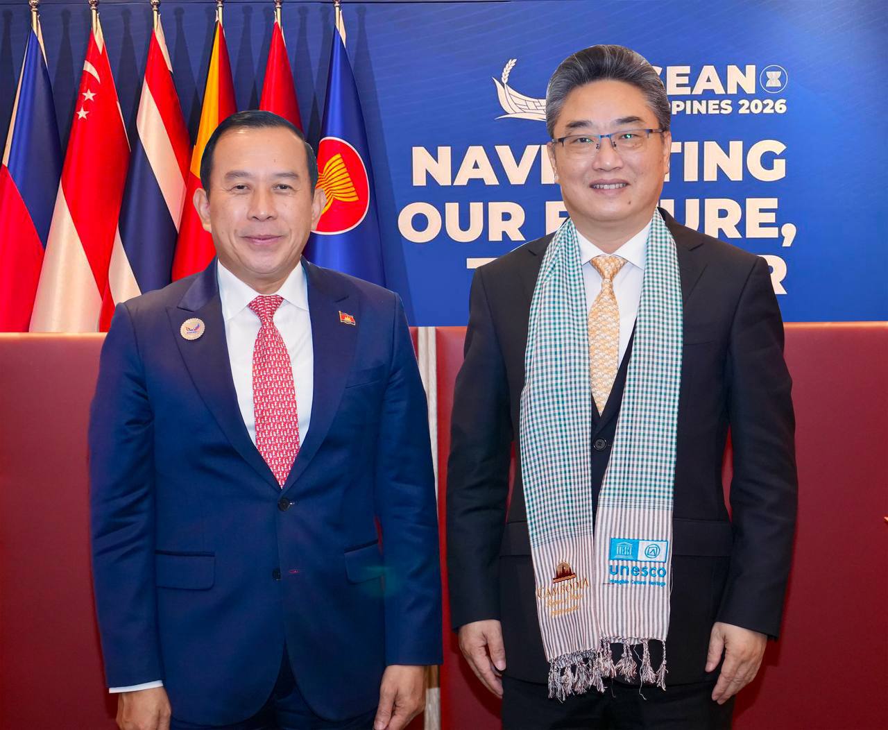(ហ្វីលីពីន)៖ នាឱកាសវេទិកាទេសចរណ៍អាស៊ានឆ្នាំ២០២៦, លោក ហួត ហាក់ រដ្ឋមន្ត្រីក្រសួងទេសចរណ៍ បានអនុញ្ញាតជូនលោក SHI ZHONGJUN អគ្គលេខាធិការមជ្ឈមណ្ឌលអាស៊ាន-ចិន ជួបពិភាក្សាការងារទ្វេភាគី នៅថ្ងៃទី២៩ ខែមករា ឆ្នាំ២០២៦ នៅសេប៊ូ ប្រទេសហ្វីលីពីន។