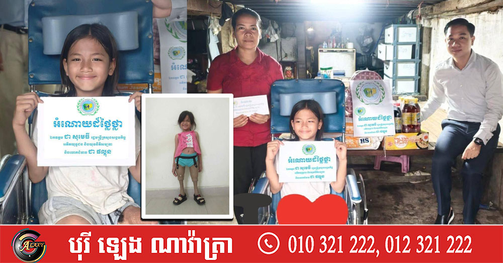 រដ្ឋមន្ត្រីក្រសួងសង្គមកិច្ច ចាត់តំណាងចុះសួរសុខទុក្ខ និងផ្តល់អំណោយជូនក្មេងស្រីពិការជើងដោយគ្រោះថ្នាក់ចរាចរណ៍ ហើយនាំទៅធ្វើអវយវៈជើងសិប្បនិម្មិត