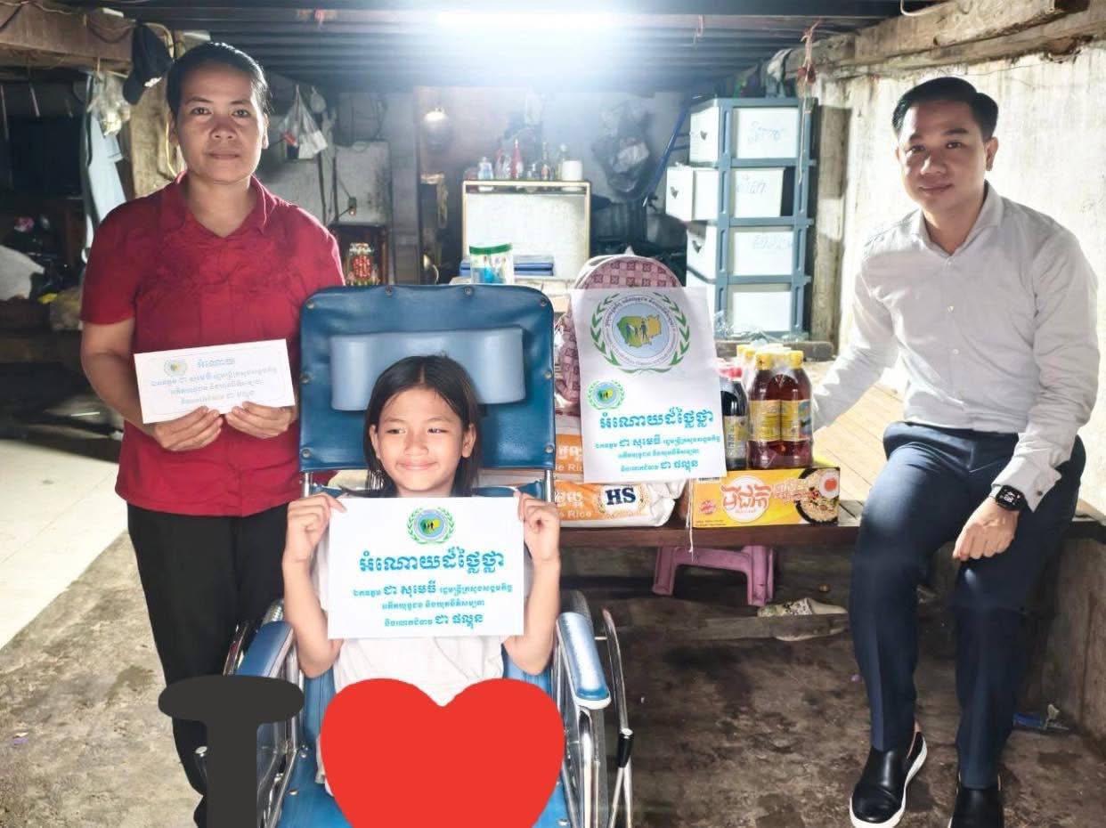 (ភ្នំពេញ)៖ ដោយមានការយកចិត្តទុកដាក់ដ៏ខ្ពង់ខ្ពស់ពីលោក ជា សុមេធី រដ្ឋមន្ត្រីក្រសួងសង្គមកិច្ច អតីតយុទ្ធជន និងយុវនីតិសម្បទា ចំពោះក្មួយស្រី សឿង សំរង ដែលមានពិការជើង ដោយសារជួបគ្រោះថ្នាក់ចរាចរណ៍ កាលពីថ្ងៃទី១ ខែកញ្ញា ឆ្នាំ២០២៥ ដែលរស់នៅភូមិចុងខ្សាច់ សង្កាត់ទួលសង្កែទី១ ខណ្ឌឬស្សីកែវ រាជធានីភ្នំពេញ។