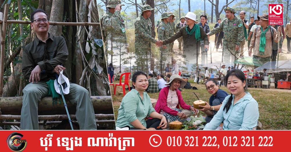 ដំណើរអមដោយលោក អ៊ាង សុផល្លែត រដ្ឋមន្ត្រីក្រសួងបរិស្ថាន លោក ហួត ហាក់ រដ្ឋមន្ត្រីក្រសួងទេសចរណ៍ និងលោក ជាម ច័ន្ទសោភ័ណ អភិបាលខេត្តកំពង់ស្ពឺផងនោះ សម្តេចមហាបវរធិបតី បានជ្រើសយកថ្មើរជើងចាប់ពីជើងភ្នំ រហូតដល់កំពូលភ្នំ។ ការជ្រើសយកការធ្វើដំណើរដោយថ្មើរជើងចាប់ពីជើងភ្នំ ដល់កំពូលភ្នំ ដើម្បីសម្តេចពិនិត្យពិច្ច័យ និងចាត់ចែងលើការរៀបចំហេដ្ឋារចនាសម្ព័ន្ធ រួមនិងកិច្ចការមួយចំនួន ដើម្បីសម្រួលដល់ការធ្វើដំណើររបស់អ្នកទេសចរ និងការធានាបានផលប្រយោជន៍សម្រាប់ប្រជាពលរដ្ឋនៅក្នុងសហគមន៍។