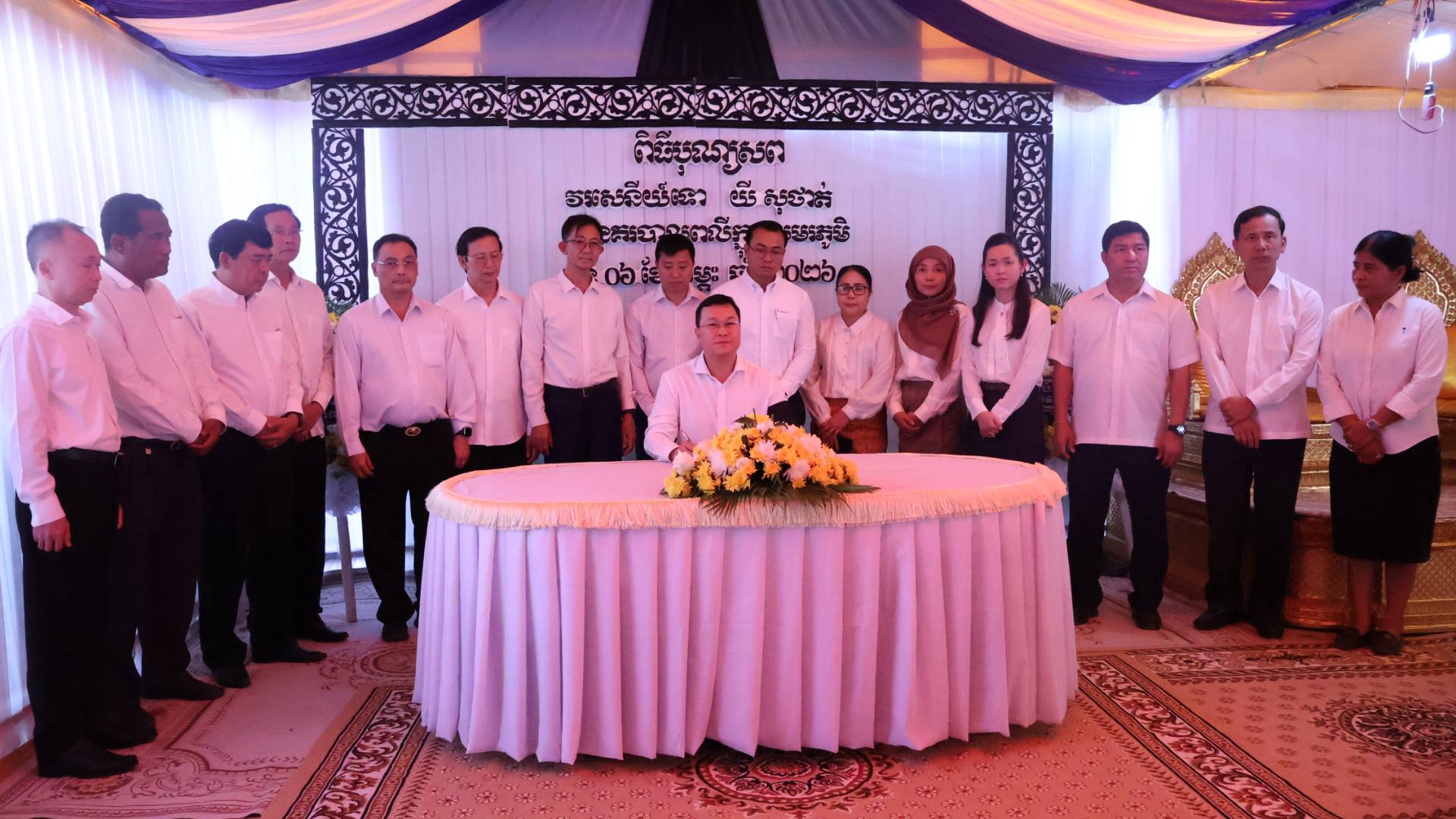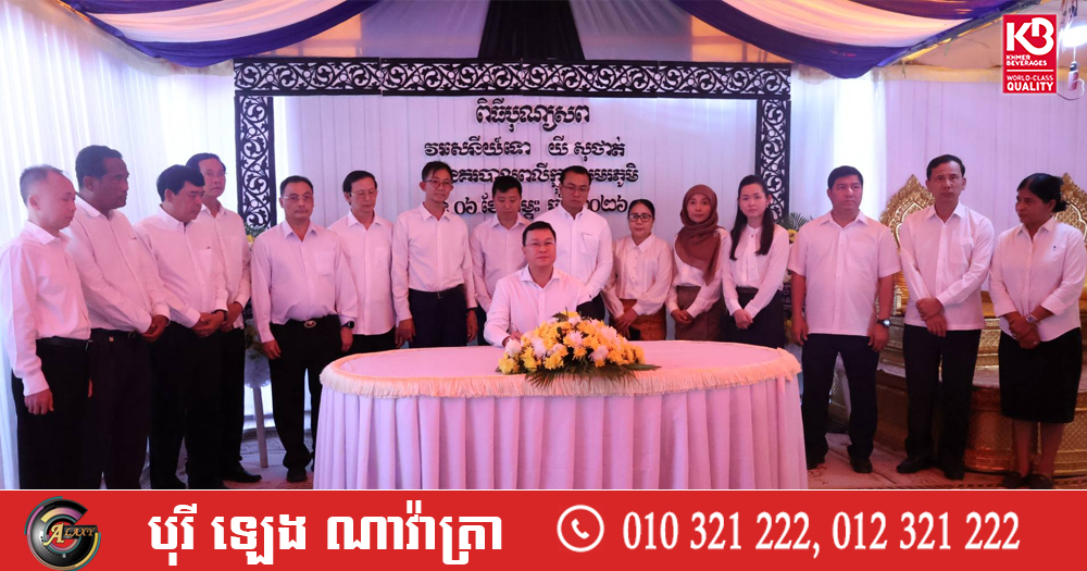 (បន្ទាយមានជ័យ)៖ លោក ឌិត ទីណា រដ្ឋមន្ត្រីក្រសួងកសិកម្ម រុក្ខាប្រមាញ់ និងនេសាទ និងជាប្រធានក្រុមការងាររាជរដ្ឋាភិបាលចុះមូលដ្ឋានខេត្តបន្ទាយមានជ័យ រួមជាមួយប្រតិភូអមដំណើរ នៅថ្ងៃទី៨ ខែកុម្ភៈ ឆ្នាំ២០២៦ បានចូលគោរពវិញ្ញាណក្ខន្ធលោកវរសេនីយ៍ទោ យី សុថាត់ នៃអធិការដ្ឋាននគរបាលស្រុកថ្មពួក ដែលបានរងរបួសទៅសមរភូមិជួរមុខ និងទទួលមរណភាពនៅថ្ងៃទី៦ ខែកុម្ភៈ ឆ្នាំ២០២៦។