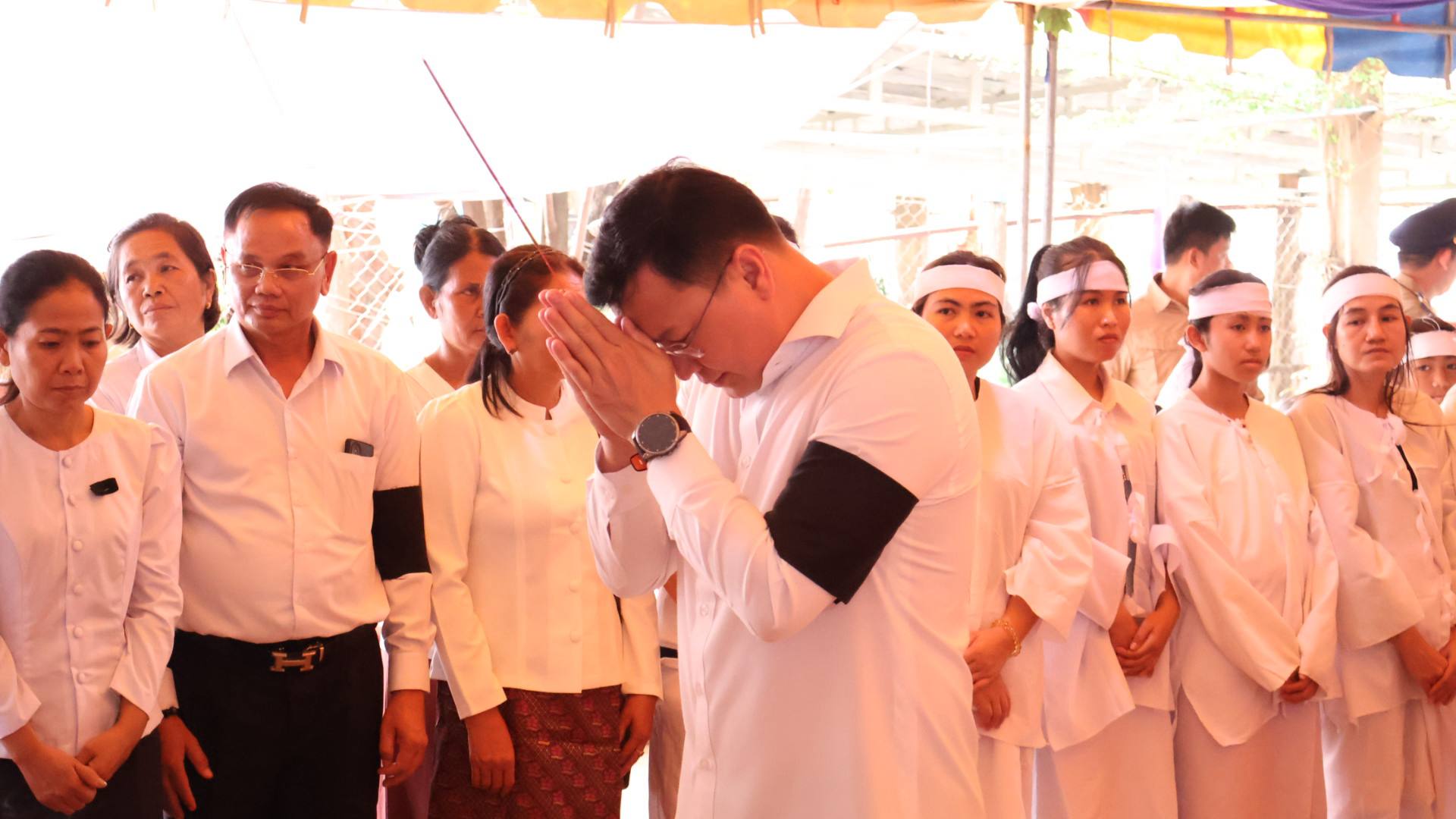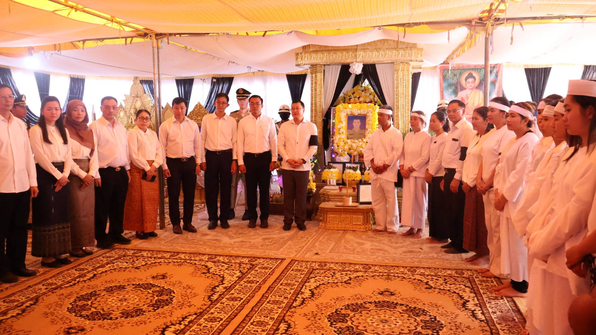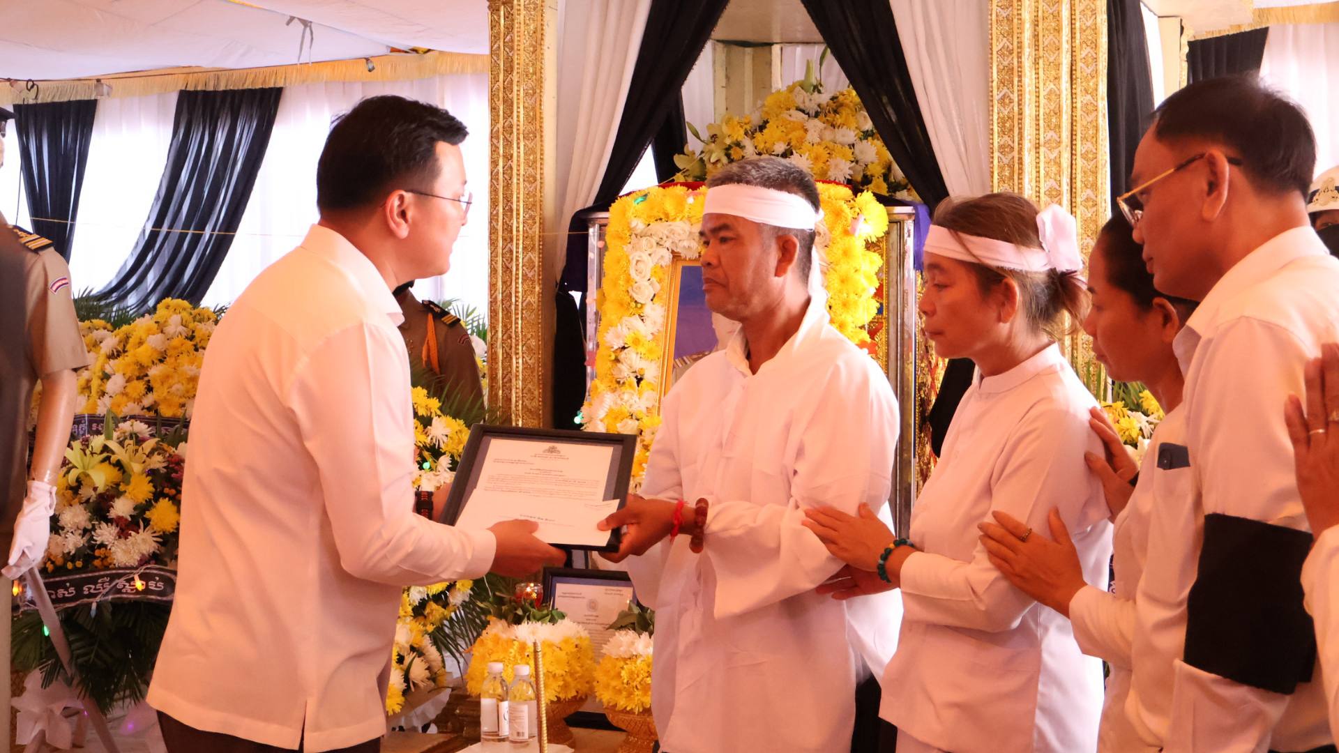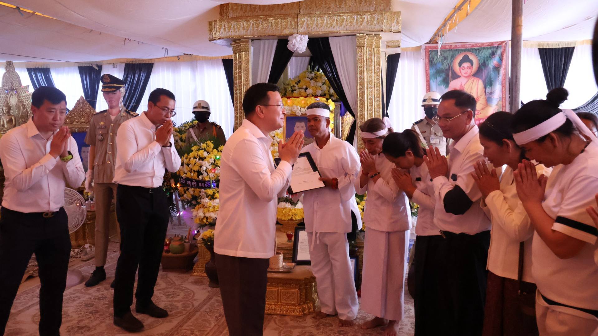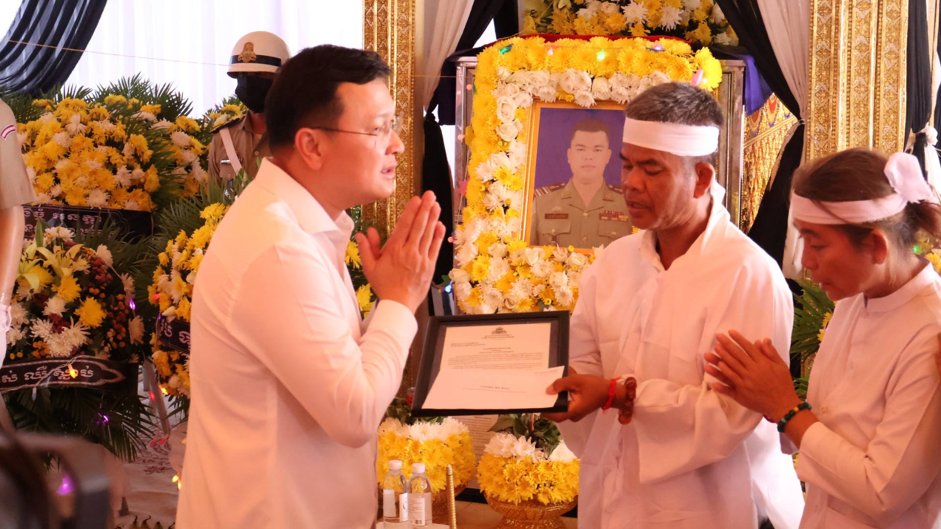 លោក ឌិត ទីណា និងប្រតិភូអមដំណើរ គោរពវិញ្ញាណក្ខន្ធលោកវរសេនីយ៍ទោ យី សុថាត់ ដែលរងរបួសនៅសមរភូមិ និងទទួលមរណភាពកាលពីថ្ងៃទី៦ កុម្ភៈ