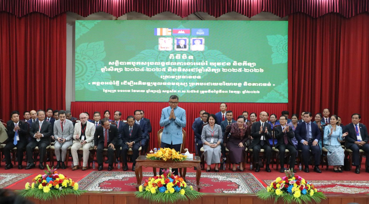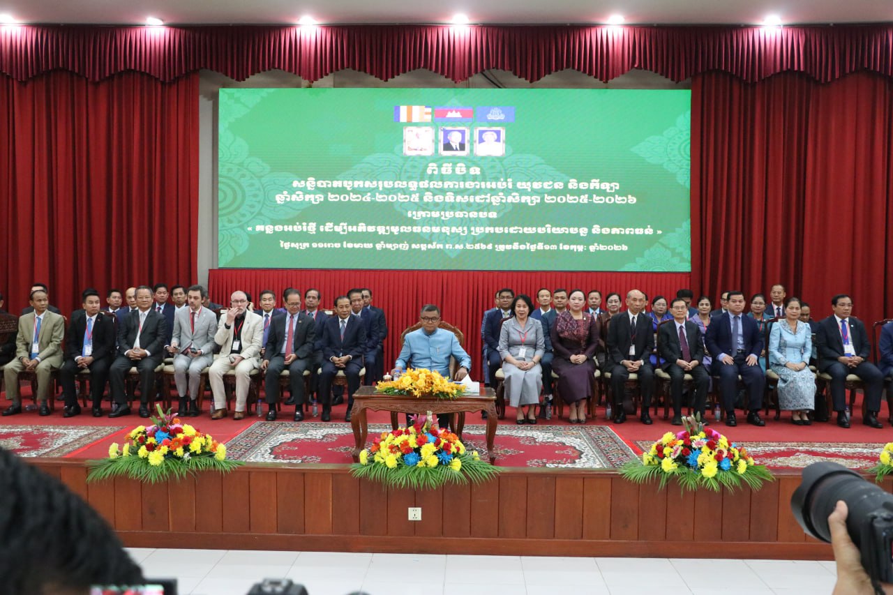 លោកបណ្ឌិតសភាចារ្យ ហង់ជួន ណារ៉ុន បានថ្លែងដូចនេះ នារសៀលថ្ងៃទី១៣ ខែកុម្ភៈ ឆ្នាំ២០២៦នេះ នាឱកាសអញ្ជើញតំណាងសម្តេចមហាបវរធិបតី ហ៊ុន ម៉ាណែត នាយករដ្ឋមន្ត្រីនៃកម្ពុជា អញ្ជើញបិទសន្និបាតបូកសរុបការងារអប់រំ យុវជន និងកីឡា ឆ្នាំសិក្សា ២០២៤-២០២៥ និងទិសដៅឆ្នាំសិក្សា ២០២៥-២០២៦ វិទ្យាស្ថានបច្ចេកវិទ្យាកម្ពុជា និងដោយមានការចូលរួមពីថ្នាក់ដឹកនាំក្រសួងអប់រំ យុវជន និងកីឡា លោក Will Park ប្រធានក្រុមការងារវិស័យអប់រំ រួមទាំងមានតំណាងដៃគូអភិវឌ្ឍ ភ្ញៀវកិត្តិយសជាតិ និងអន្តរជាតិ លោក លោកស្រី ប្រតិភូអប់រំ យុវជន និងកីឡារាជធានី-ខេត្ត ជាច្រើនរូបទៀត។