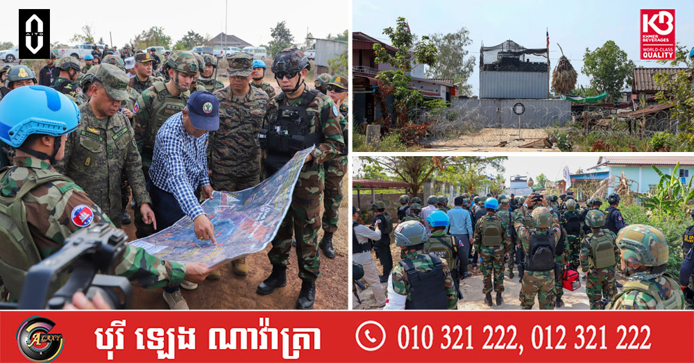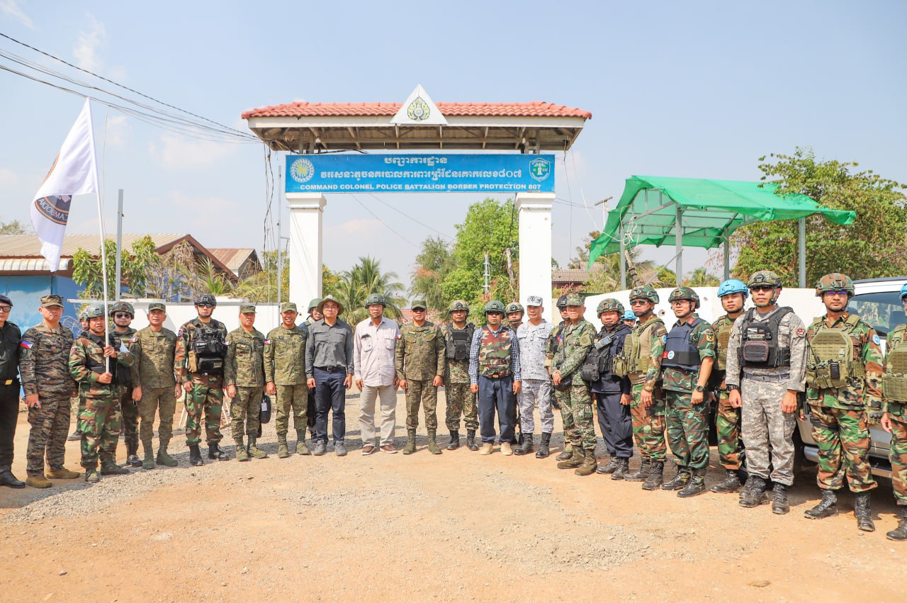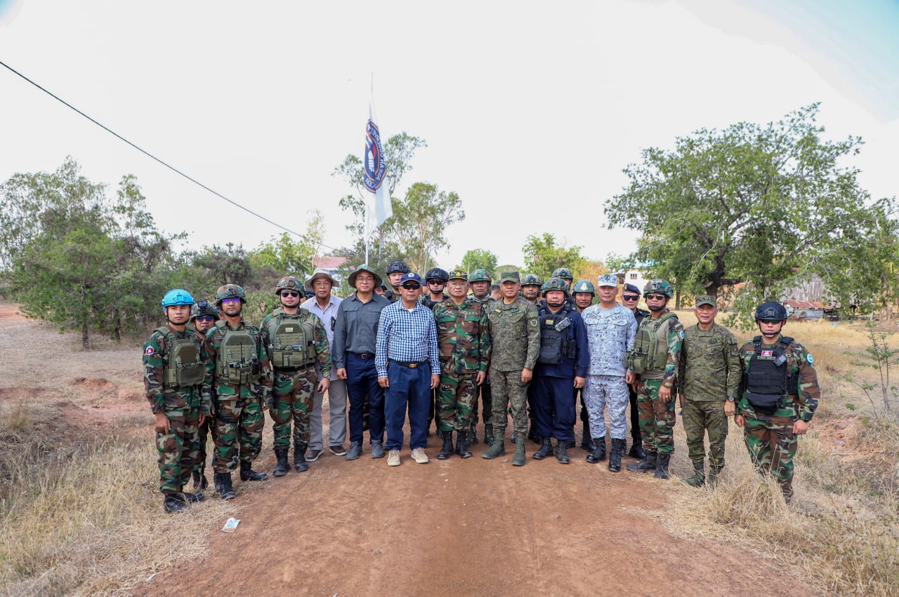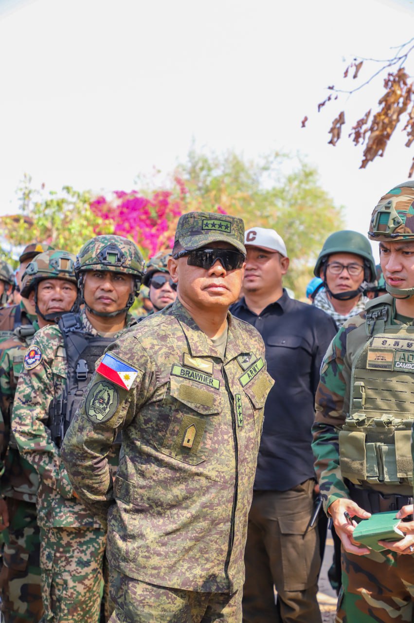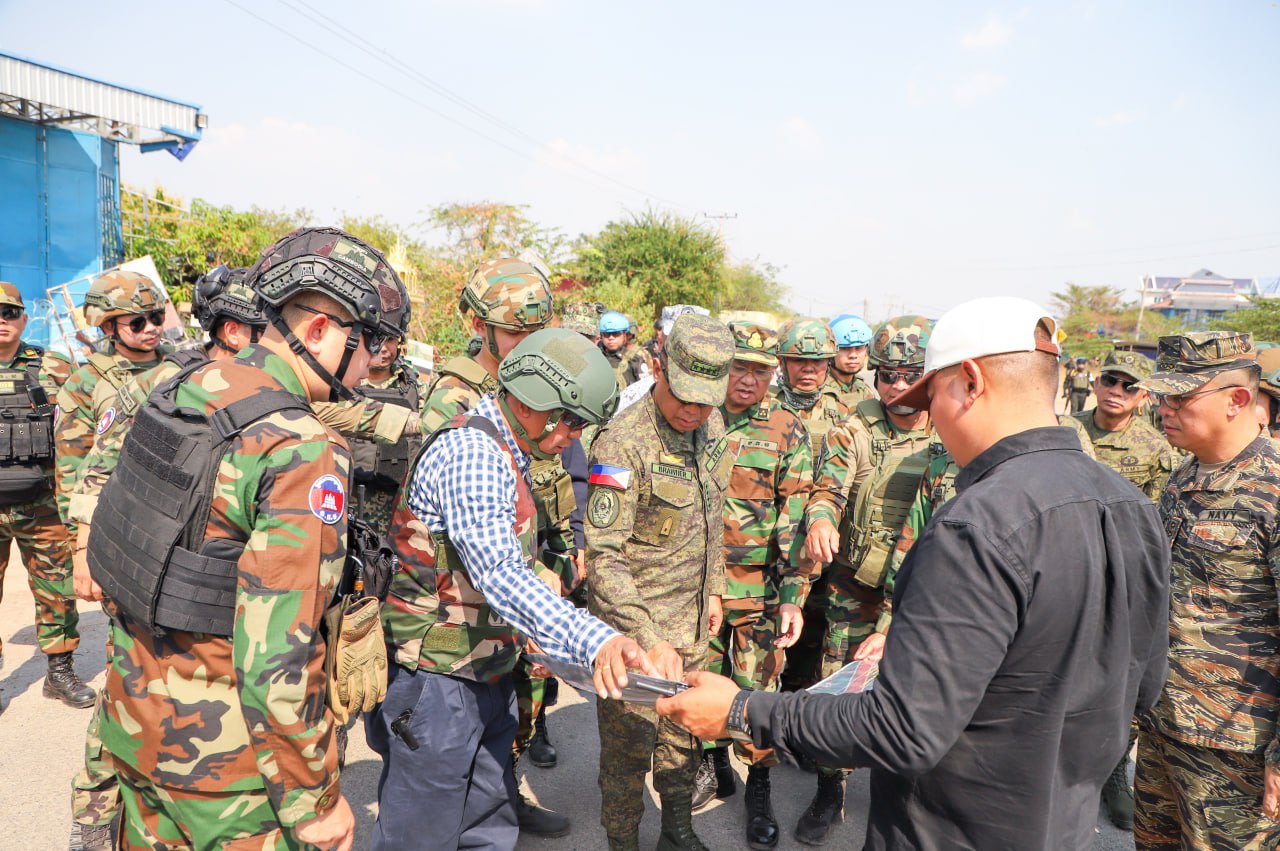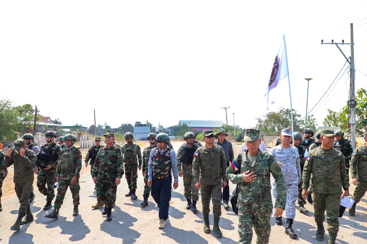 (បន្ទាយមានជ័យ)៖ លោកស្រីឧត្តមសេនីយ៍ឯក ម៉ាលី សុជាតា អ្នកនាំពាក្យក្រសួងការពារជាតិ នៃព្រះរាជាណាចក្រកម្ពុជា បានឱ្យដឹងថា នៅវេលាម៉ោង ១៤:០៥នាទីរសៀល ថ្ងៃសុក្រ ទី១៣ ខែកុម្ភៈ ឆ្នាំ២០២៦នេះ នាយឧត្តមសេនីយ៍ ROMEO S BRAWNER JR អគ្គមេបញ្ជាការ នៃកងទ័ពហ្វីលីពីន បានចុះសង្កេតការណ៍អំពីស្ថានភាពព្រំដែននៅក្នុងភូមិសាស្រ្តច្រកបឹងត្រកួន ស្ថិតក្នុងស្រុកថ្មពួក ខេត្តបន្ទាយមានជ័យ ក្រោយបទឈប់បាញ់ចូលជាធរមាន ដោយមានការអមដំណើរពីសំណាក់ក្រុមសម្របសម្រួល (CLG) នៃព្រះរាជាណាចក្រកម្ពុជា និងក្រុមអ្នកសង្កេតការណ៍អាស៊ាន (AOT)។