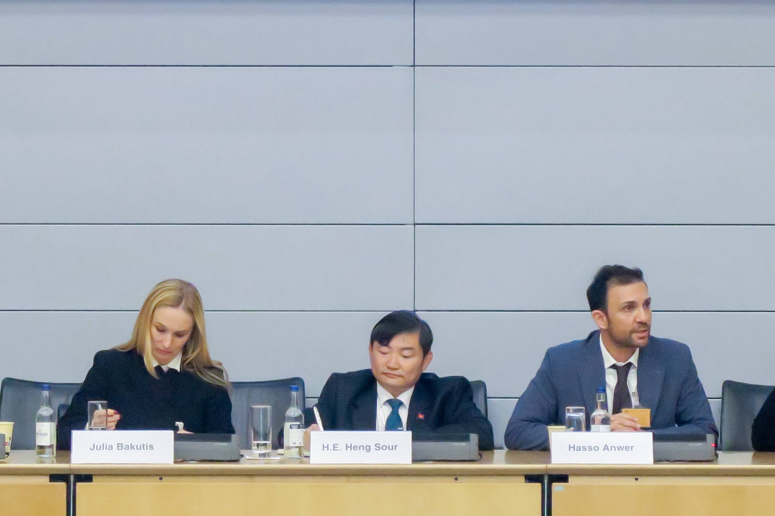 ក្នុងកិច្ចពិភាក្សានេះ លោករដ្ឋមន្ត្រីបានចែករំលែកនូវបទពិសោធរបស់កម្ពុជា ក្នុងការគាំទ្រដល់ការអភិវឌ្ឍប្រកបដោយនិរន្តរភាពនៃវិស័យកាត់ដេរ ស្បែកជើង និងផលិតផលិតផលធ្វើដំណើរ (GFT) ដែលជាវិស័យស្នូលជំរុញកំណើនសេដ្ឋកិច្ច បង្កើនឱកាសការងារ និងចូលរួមកាត់បន្ថយភាពក្រីក្រ តាមរយៈការដាក់ចេញនូវគោលនយោបាយនានារបស់រាជរដ្ឋាភិបាល ក៏ដូចជាការអនុវត្តបទប្បញ្ញត្តិច្បាប់ពាក់ព័ន្ធនឹងសិទ្ធិមនុស្ស និងបរិស្ថានប្រកបដោយប្រសិទ្ធភាពក្នុងខ្សែច្រវាក់ផលិតកម្ម។