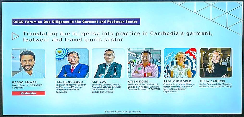 លោក ហេង សួរ ចូលរួមចែករំលែកបទពិសោធអំពីការត្រួតពិនិត្យអនុលោមភាពច្បាប់ ពាក់ព័ន្ធនឹងសិទ្ធិមនុស្ស និងបរិស្ថាន (HREDD) លក្ខខណ្ឌសុវត្ថិភាព និងសុខភាពការងារ និងកិច្ចសន្ទនាសង្គម ក្នុងវេទិកាប្រចាំឆ្នាំរបស់ អង្គការ OECD