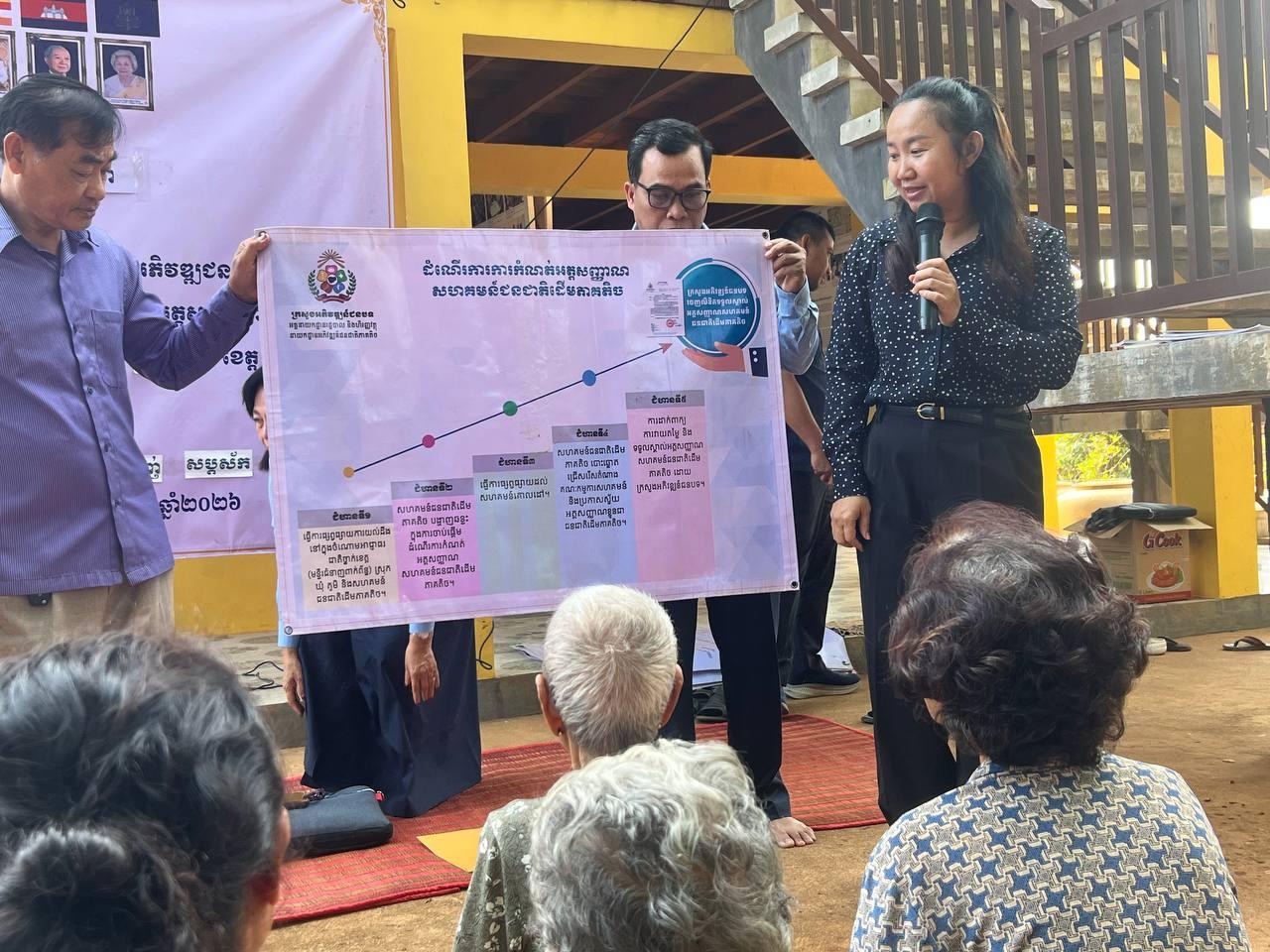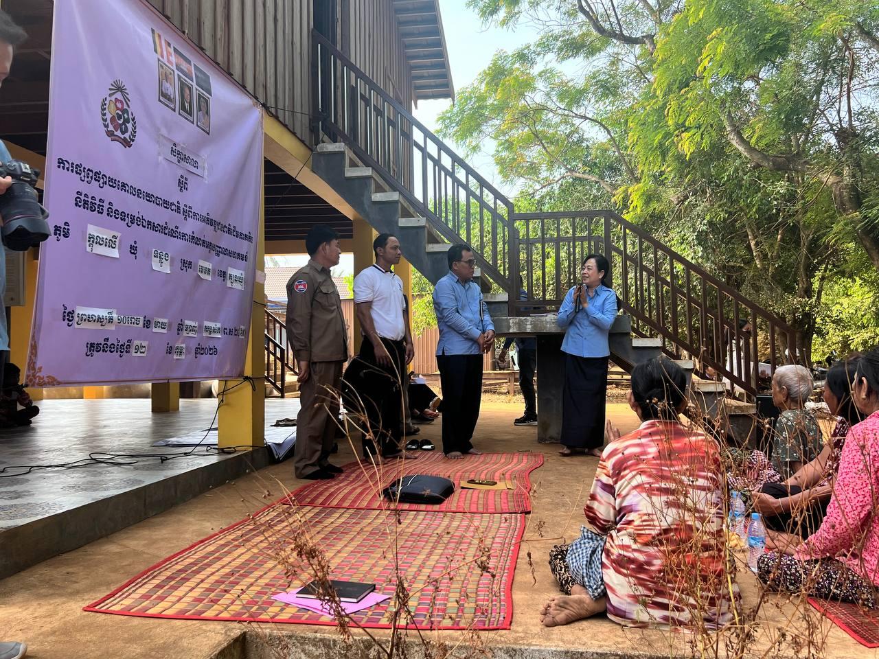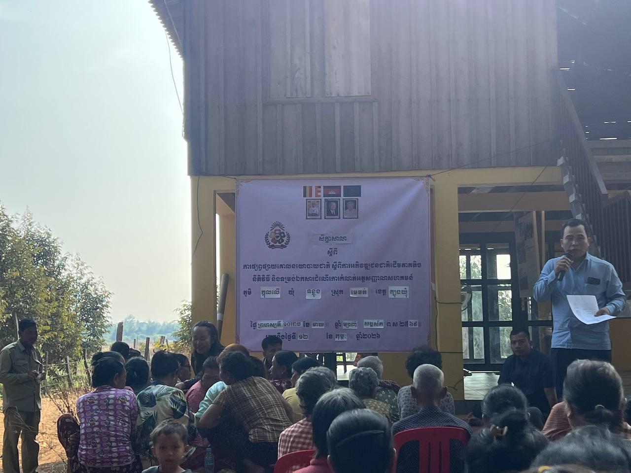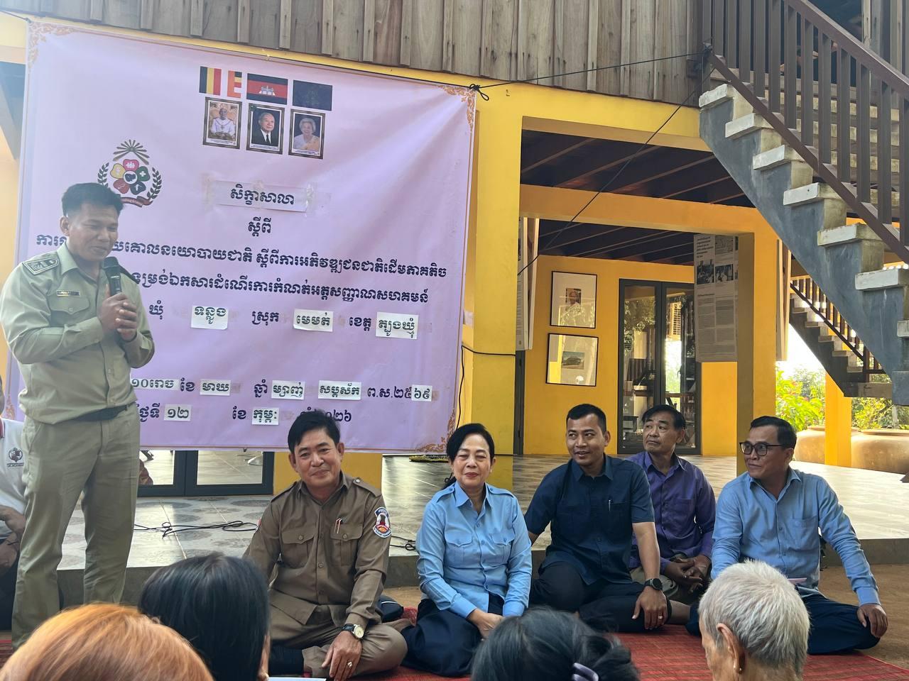 (ភ្នំពេញ)៖ នៅថ្ងៃទី១៣ ខែកុម្ភៈ ឆ្នាំ២០២៦ ក្រសួងអភិវឌ្ឍន៍ជនបទ បានបើកសិក្ខាសាលាស្តីពី ការផ្សព្វផ្សាយគោលនយោបាយជាតិ ស្តីពីការអភិវឌ្ឍន៍ជនជាតិដើមភាគតិច នីតិវិធី និងទម្រង់ឯកសារដំណើរការនៃការកំណត់អត្តសញ្ញាណសហគមន៍ ដោយមានការចូលរួមពីប្រជាជន ជនជាតិដើមភាគតិចស្ទៀង មន្ត្រីមកពីមន្ទីរអភិវឌ្ឍន៍ជនបទខេត្តត្បូងឃ្មុំ រដ្ឋបាលស្រុកមេមត់ អាជ្ញាធរឃុំទន្លូង និងអាជ្ញាធរភូមិក្តុលលើ ស្ថិតនៅទីតាំងផ្ទះសហគមន៍ស្ទៀងភូមិក្តុលលើ នៃមជ្ឈមណ្ឌលឯកសារកម្ពុជា។