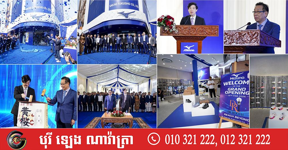 (ភ្នំពេញ)៖ ទេសរដ្ឋមន្ត្រី គី តិច ទទួលបន្ទុកបេសកកម្មពិសេស និងជាប្រធានក្រុមមេធាវីរាជរដ្ឋាភិបាល និងជាប្រធានក្រុមមេធាវីស្ម័គ្រចិត្តសម្តេចតេជោសែន ព្រមទាំងតំណាងស្ថានទូតជប៉ុនប្រចាំកម្ពុជា នៅថ្ងៃទី១៤ ខែកុម្ភៈ ឆ្នាំ២០២៦នេះ បានអញ្ជើញចូលរួមជាអធិបតីភាព ក្នុងពិធីបើកសម្ពោធជាផ្លូវការ ហាងលក់សម្ភារកីឡា «Mizuno» នៅក្នុងប្រទេសកម្ពុជា។