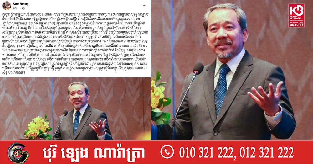 (ភ្នំពេញ)៖ ទេសរដ្ឋមន្ត្រី កែវ រ៉េមី ប្រធានគណៈកម្មាធិការសិទ្ធិមនុស្សកម្ពុជា នៅថ្ងៃទី១៧ ខែកុម្ភៈ ឆ្នាំ២០២៦នេះ បានឆ្លើយតបចំពោះបងប្អូនមួយចំនួនតូចដែលមិនគាំទ្រដល់រាជរដ្ឋាភិបាល ក្នុងការចោទប្រកាន់ថា រាជរដ្ឋាភិបាលទទួលស្គាល់ការបាត់បង់ទឹកដីតាមរយៈធ្វើផ្ទះឱ្យជនភៀសសឹក។