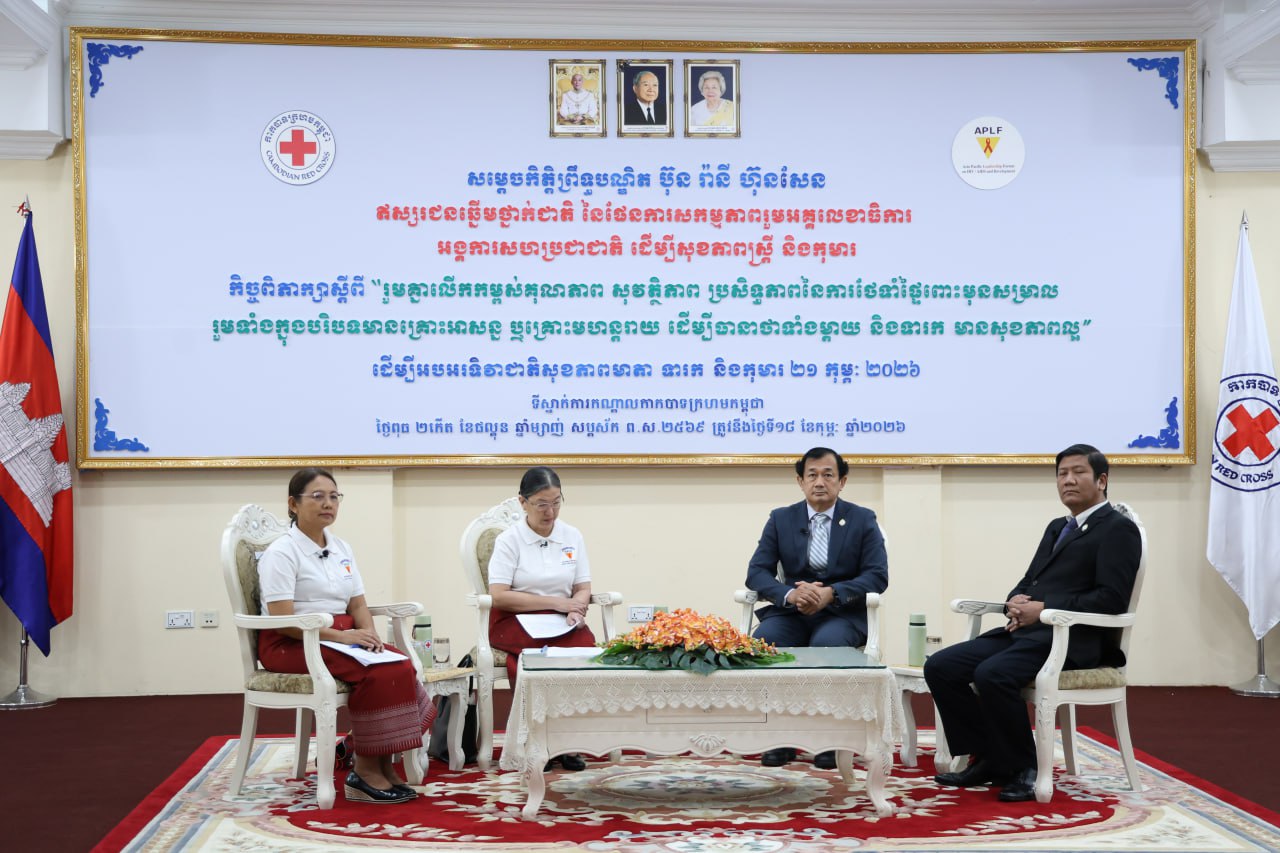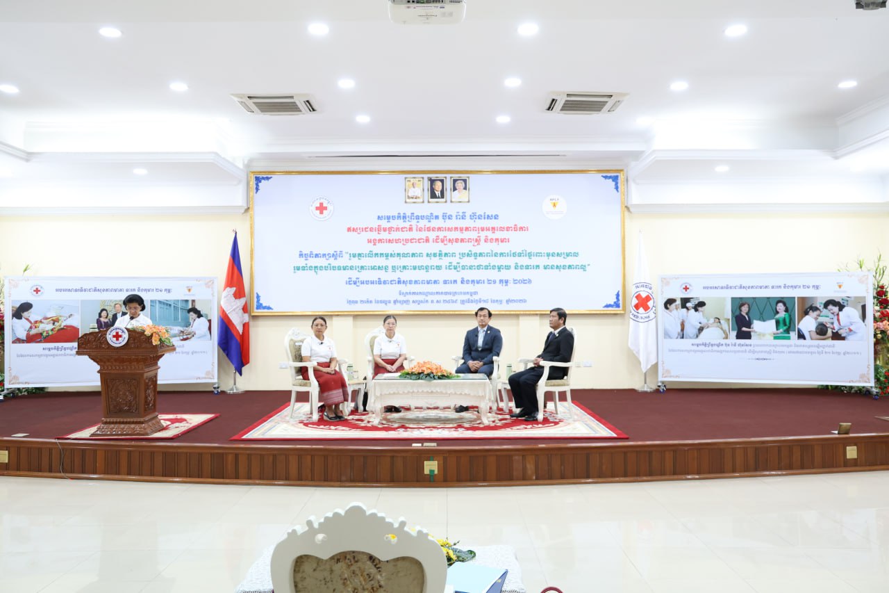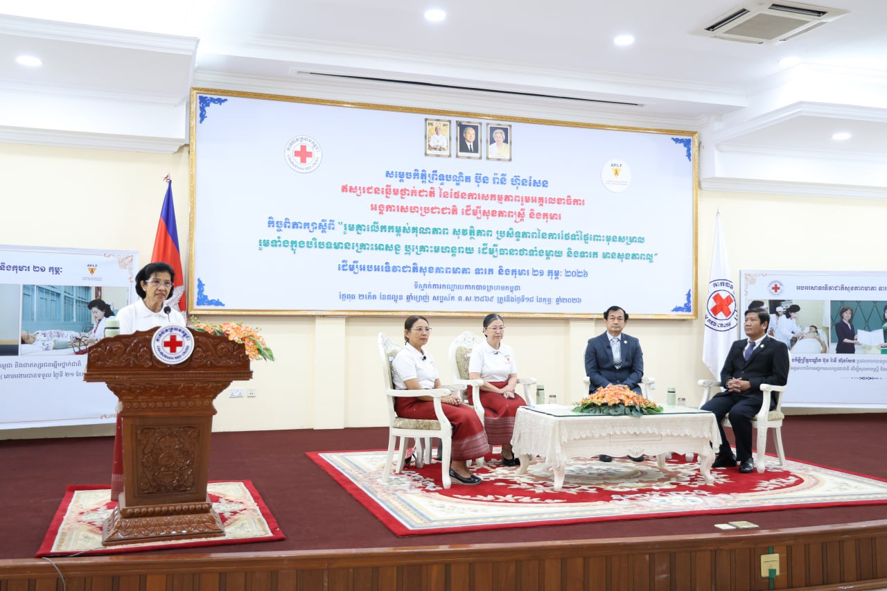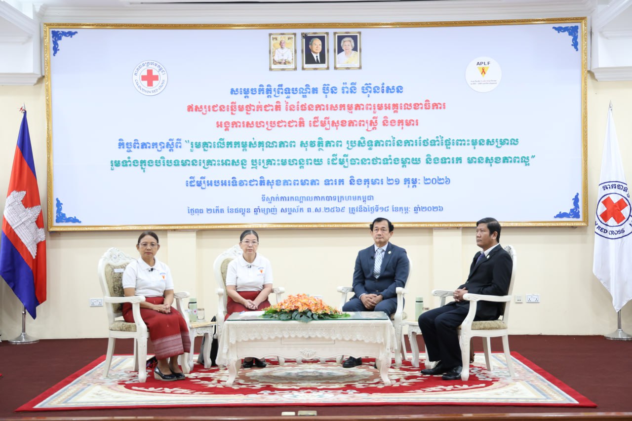(ភ្នំពេញ)៖ កាកបាទក្រហមកម្ពុជា ដែលមានសម្តេចព្រះមហាក្សត្រី ព្រះវររាជមាតាជាតិខ្មែរ ជាព្រះប្រធានកិត្តិយស និងសម្តេចកិត្តិព្រឹទ្ធបណ្ឌិត ប៊ុន រ៉ានី ហ៊ុនសែន ជាប្រធាន និងជាឥស្សរជនឆ្នើមថ្នាក់ជាតិ នៃផែនការសកម្មភាពរួម អគ្គលេខាធិការ អង្គការសហប្រជាជាតិ ដើម្បីសុខភាពស្ត្រី និងកុមារ នៅព្រឹកថ្ងៃទី១៨ ខែកុម្ភៈ ឆ្នាំ២០២៦ បានរៀបចំឱ្យមានកិច្ចពិភាក្សា ក្រោមប្រធានបទ «រួមគ្នាលើកកម្ពស់គុណភាព សុវត្ថិភាព ប្រសិទ្ធភាពនៃការថែទាំផ្ទៃពោះមុនសម្រាល រួមទាំងក្នុង បរិបទមាន គ្រោះអាសន្ន ឬគ្រោះមហន្តរាយ ដើម្បីធានាថាទាំងម្តាយនិងទារក មានសុខភាពល្អ» ដើម្បីអបអរទិវាជាតិសុខភាពមាតា ទារក និងកុមារ ២១កុម្ភៈ ២០២៦។