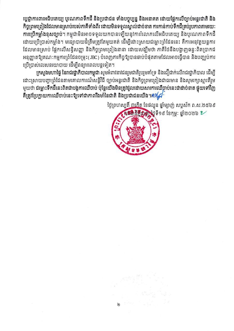 ខាងក្រោមនេះ ជាសេចក្ដីប្រកាសព័ត៌មានរបស់ក្រសួងមហាផ្ទៃ៖