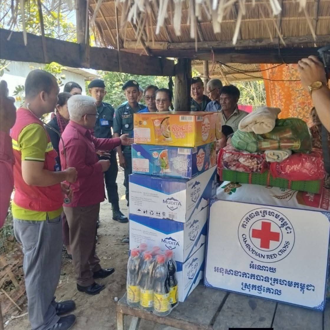 សូមបញ្ជាក់ថា អំណោយដែលសាខាអនុសាខាស្រុក និងសប្បុរសជនបានផ្តល់ជូនរួមមាន អង្ករ៧៥គីឡូក្រាម, មីជាតិ២កេស, ត្រីខ៣យួរ, ទឹកត្រី៤យួរ, ទឹកស៊ីអុីវ៤យួរ, ទឹកបរិសុទ្ធ៣កេស២០យួរ, មុង, ភួយ, ក្រមា, កន្ទេល, សម្លៀកបំពាក់ និងថវិកាមួយចំនួនផងដែរ៕