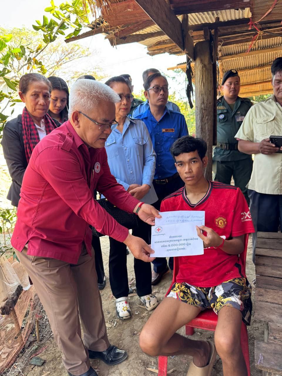 (បាត់ដំបង)៖ អនុវត្តន៍តាមអនុសាសន៍ណែនាំរបស់លោក សុខ លូ អភិបាលខេត្ត និងជាប្រធានគណៈកម្មាធិការសាខាកាកបាទក្រហមកម្ពុជា ខេត្តបាត់ដំបង ព្រឹកថ្ងៃទី១៩ ខែកុម្ភ: ឆ្នាំ២០២៦នេះ ក្រុមការងារសាខាកាកបាទក្រហមកម្ពុជាខេត្តបាត់ដំបង ដឹកនាំដោយលោក ផេង សិទ្ធី អនុប្រធានអចិន្រ្តៃយ៍គណ:កម្មាធិការសាខា អមដំណើយដោយលោកនាយកសាខា អនុសាខា និងសហការីបានអញ្ជើញចុះសួរសុខទុក្ខ និងនាំយកអំណោយមនុស្សធម៌របស់សប្បុរសជន ផ្តល់ជូនយុវជន រ៉ើន ណាគ្រីន អាយុ២១ឆ្នាំ ជំងឺប្រចាំកាយក្រោកមិនរួច (ពិការ) មានបងប្អូនចំនួន៦នាក់ ស្រី៣នាក់ រស់នៅភូមិ ជ្រោយស្តៅ ឃុំជ្រោយស្តៅ ស្រុកថ្មគោល ខេត្តបាត់ដំបង ។