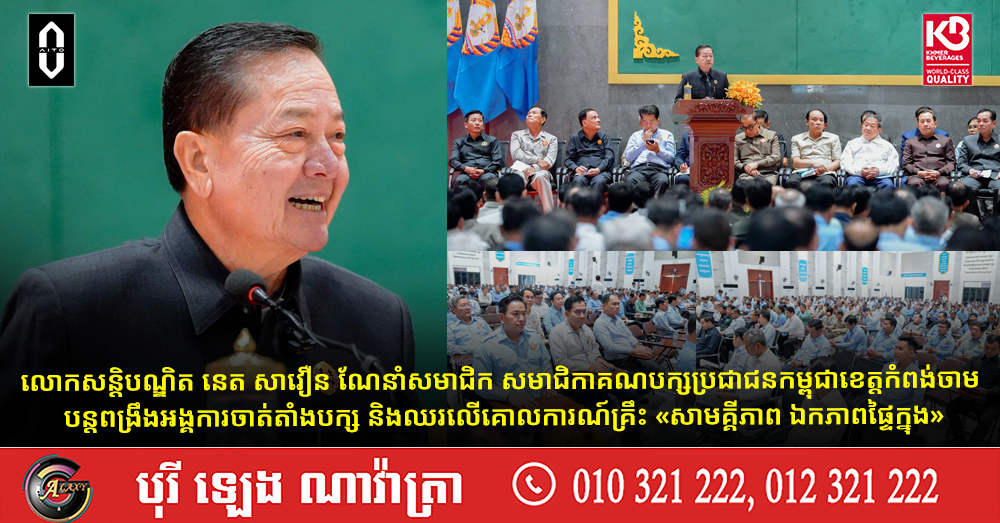 លោកសន្ដិបណ្ឌិត នេត សាវឿន ណែនាំសមាជិក សមាជិកាគណបក្សប្រជាជនកម្ពុជាខេត្តកំពង់ចាម បន្ដពង្រឹងអង្គការចាត់តាំងបក្ស និងឈរលើគោលការណ៍គ្រឹះ «សាមគ្គីភាព ឯកភាពផ្ទៃក្នុង»
