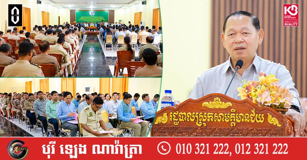 (កំពង់ឆ្នាំង)៖ ក្រុមការងាររាជរដ្ឋាភិបាលចុះមូលដ្ឋានស្រុកសាមគ្គីមានជ័យ និងស្រុកទឹកផុស ខេត្តកំពង់ឆ្នាំង បានរៀបចំកិច្ចប្រជុំបូកសរុបលទ្ធផលការងារប្រចាំឆ្នាំ២០២៥ និងលើកទិសដៅការងារឆ្នាំ២០២៦ របស់ខ្លួន ក្រោមអធិបតីភាពដ៏ខ្ពង់ខ្ពស់លោក ឆាយ ឫទ្ធិសែន រដ្ឋមន្ដ្រីក្រសួងអភិវឌ្ឍន៍ជនបទ អនុប្រធានទី១ ក្រុមការងាររាជរដ្ឋាភិបាលចុះមូលដ្ឋានខេត្តកំពង់ឆ្នាំង និងជាប្រធានក្រុមការងាររាជរដ្ឋាភិបាលចុះមូលដ្ឋានស្រុកសាមគ្គីមានជ័យ និងស្រុកទឹកផុស នាព្រឹកថ្ងៃទី២១ ខែកុម្ភៈ ឆ្នាំ២០២៦ នៅសាលាស្រុកសាមគ្គីមានជ័យ។