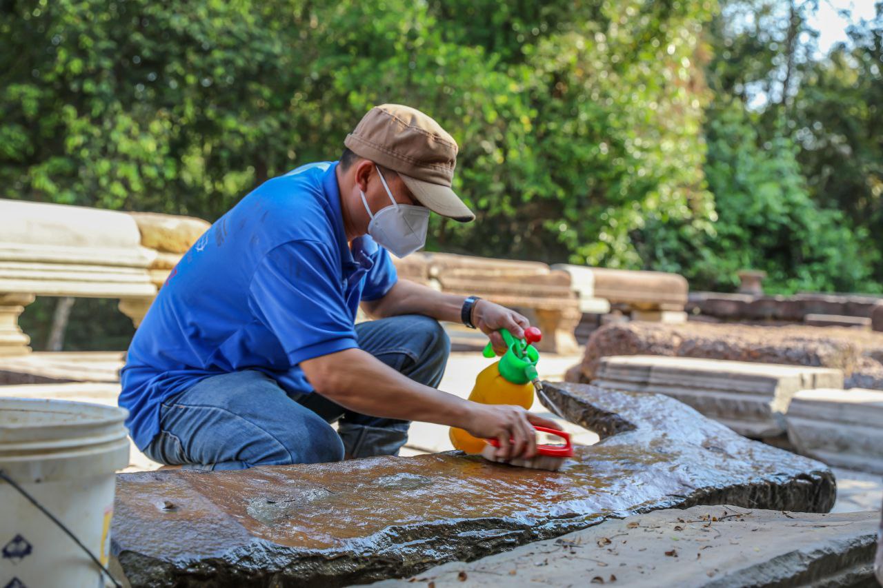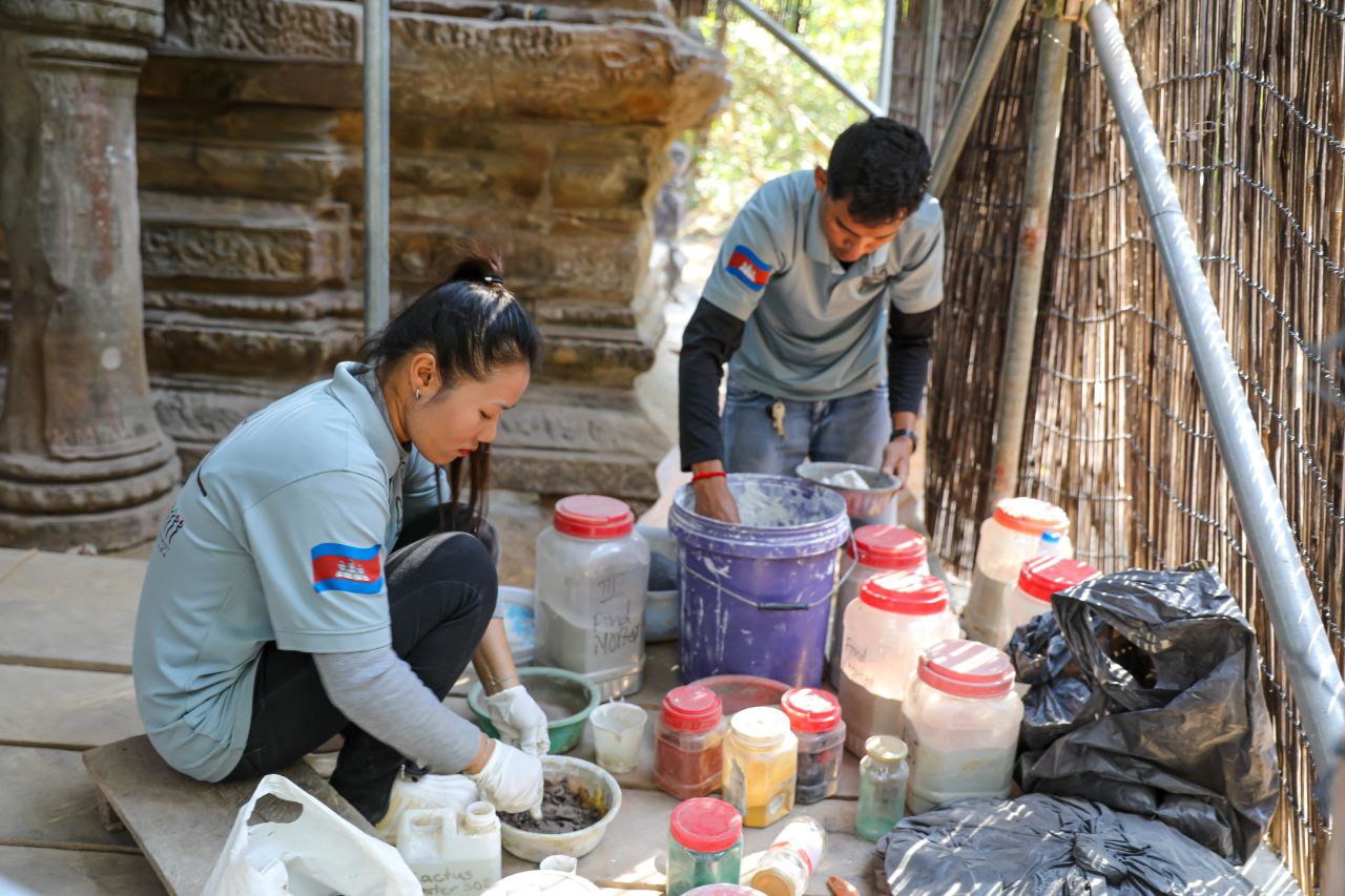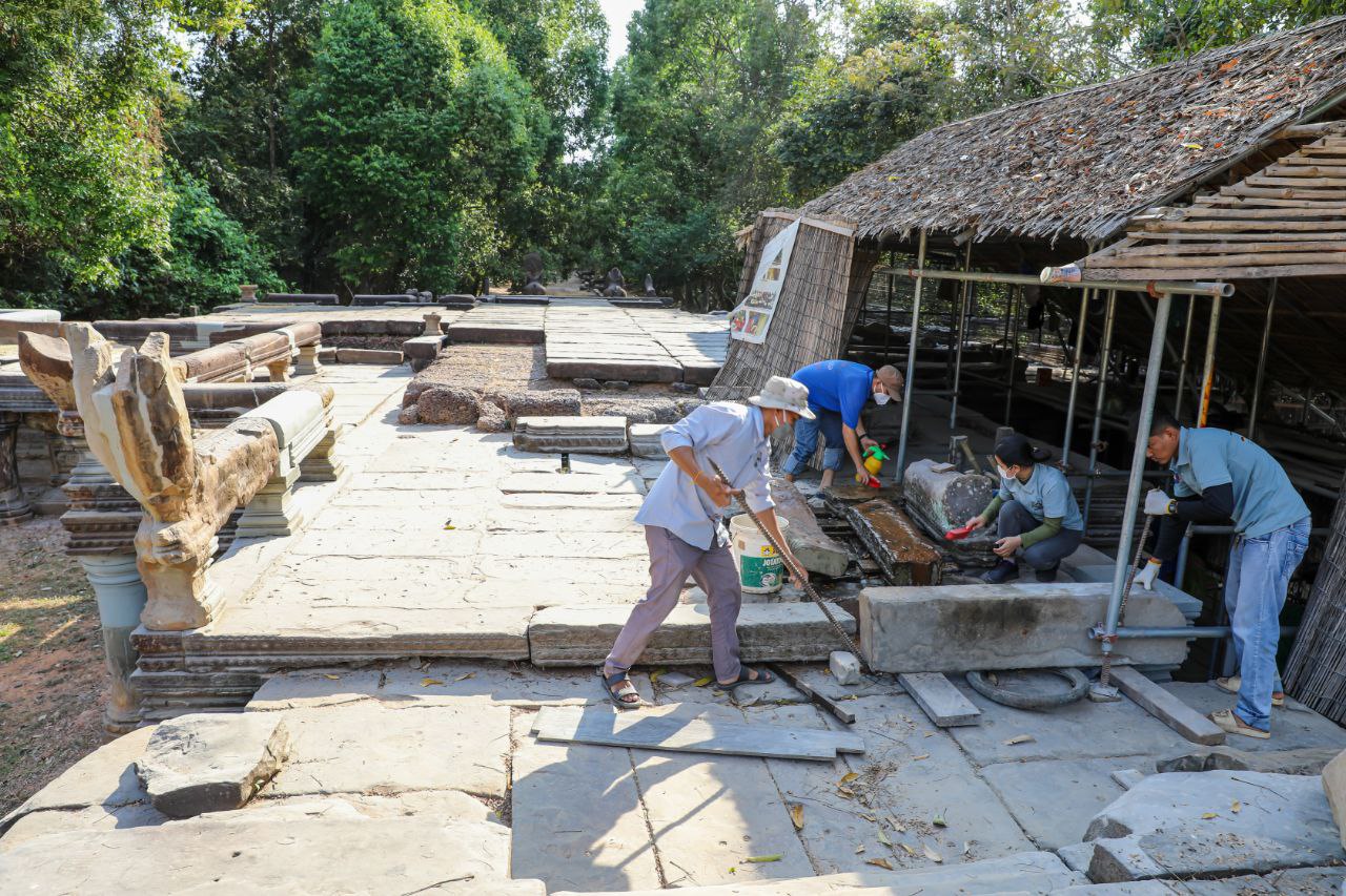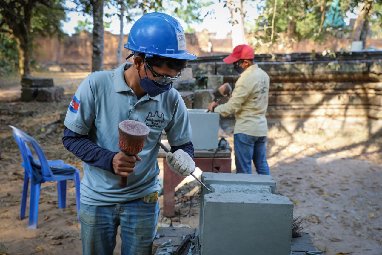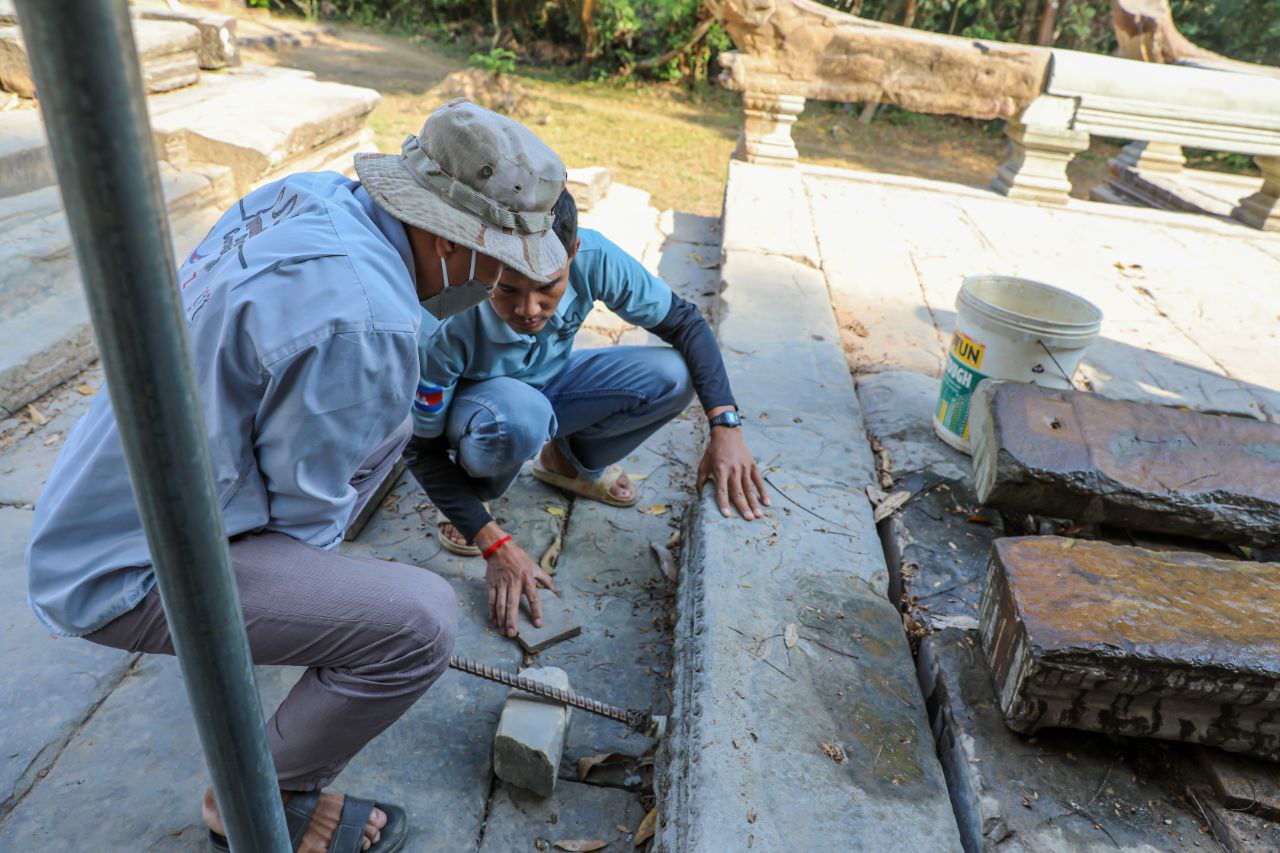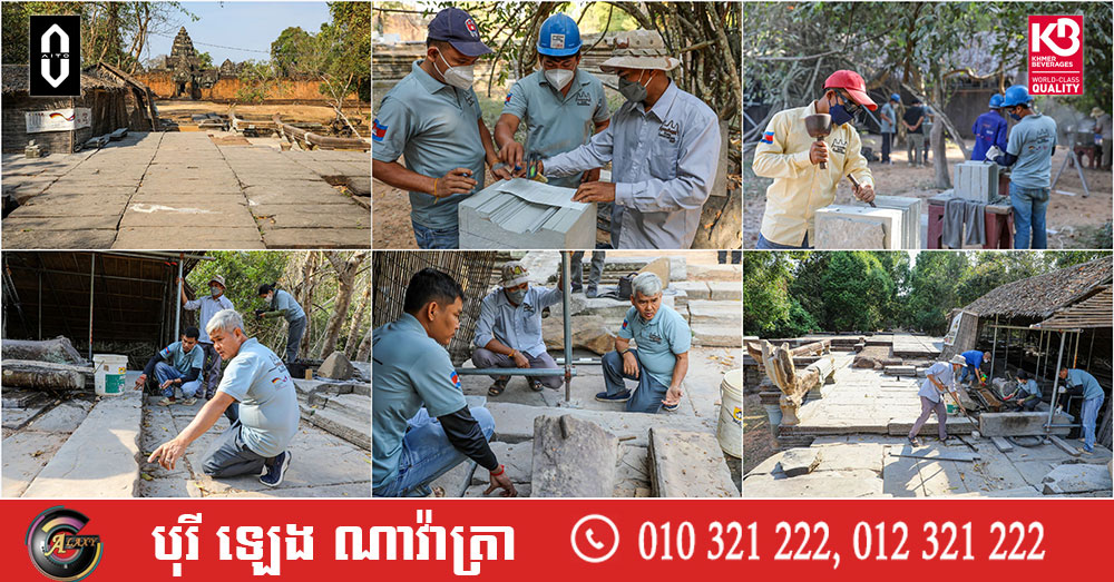 (សៀមរាប)៖ អាជ្ញាធរជាតិអប្សរា សហការជាមួយអង្គការ GIZ នៃប្រទេសអាល្លឺម៉ង់ កំពុងបន្តគម្រោងជួសជុលរានហាលខាងកើតប្រាសាទបន្ទាយសំរ៉ែ ដោយនៅឆ្នាំថ្មីនេះ គម្រោងបានដំណើរការជួសជុលបង្កាន់ដៃនាគ នៅជ្រុងខាងត្បូង។