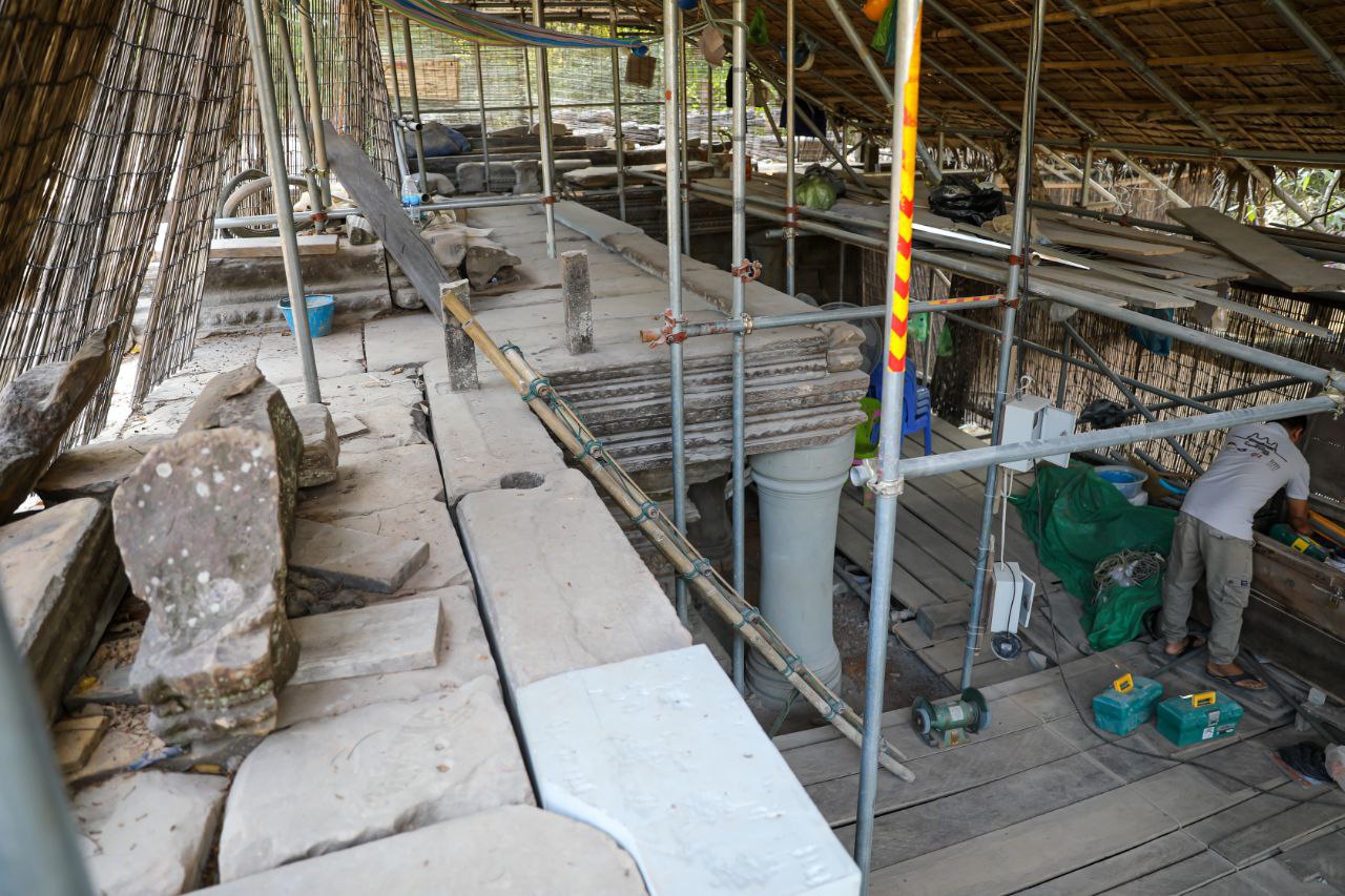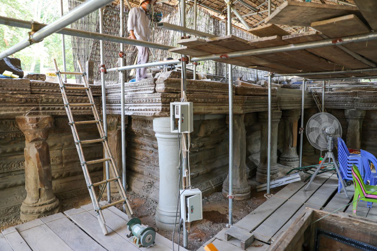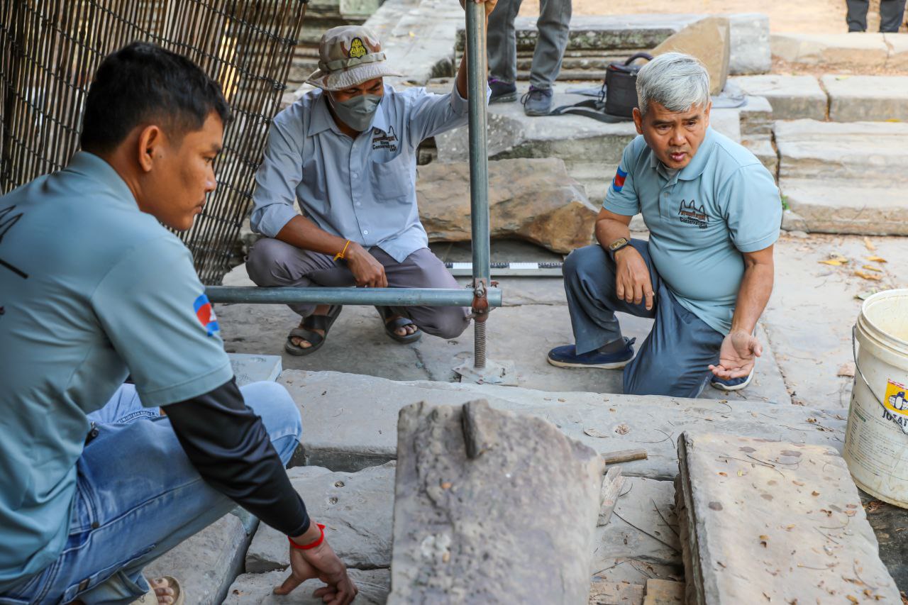 អាជ្ញាធរជាតិអប្សរា និងអង្គការ GIZ នៃប្រទេសអាល្លឺម៉ង់ កំពុងបន្តគម្រោងជួសជុលបង្កាន់ដៃនាគរានហាលខាងកើត ប្រាសាទបន្ទាយសំរ៉ែ