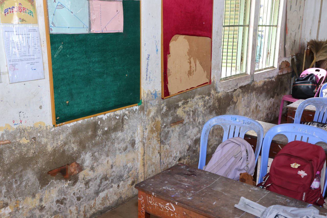 អភិបាលខេត្ត បន្តថា បន្ទាប់ពីទទួលបានសំណើ និងសំណូមពររបស់លោកនាយកសាលា ស្នើសុំអគារសិក្សាថ្មី ព្រោះអាគារសិក្សាសព្វថ្ងៃ មានសភាពចាស់ទ្រុឌទ្រោម សាងសង់តាំងពីឆ្នាំ១៩៧៩ ដែលប្រឈមនឹងហានិភ័យ បង្កគ្រោះថ្នាក់ដល់សិស្សានុសិស្សពេលកំពុងសិក្សា ដូច្នេះទើបលោកបានដឹកនាំមន្ត្រីជំនាញ មន្ទីរពាក់ព័ន្ធ និងអាជ្ញាធរក្រុងតាខ្មៅ ចុះពិនិត្យស្ថានភាពជាក់ស្ដែង ឃើញថាអគារនេះមានសភាពចាស់ទ្រុឌទ្រោម ប្រេះតាមជញ្ជាំង សសរប្រេះចេញដែក មិនអាចឱ្យសិស្សានុសិស្សបន្តការសិក្សានៅទីនេះបានយូរតទៅទៀតឡើយ។