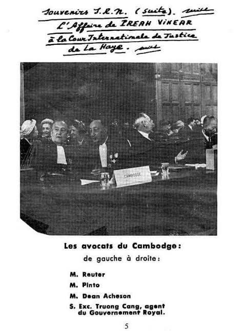 - Case Concerning the Temple of Preah Vihear (Cambodia v. Thailand), Merits, Judgment of 15 June 1962: សាលដីកាស្ថាពរដែលទទួលស្គាល់ផែនទី Annex I។