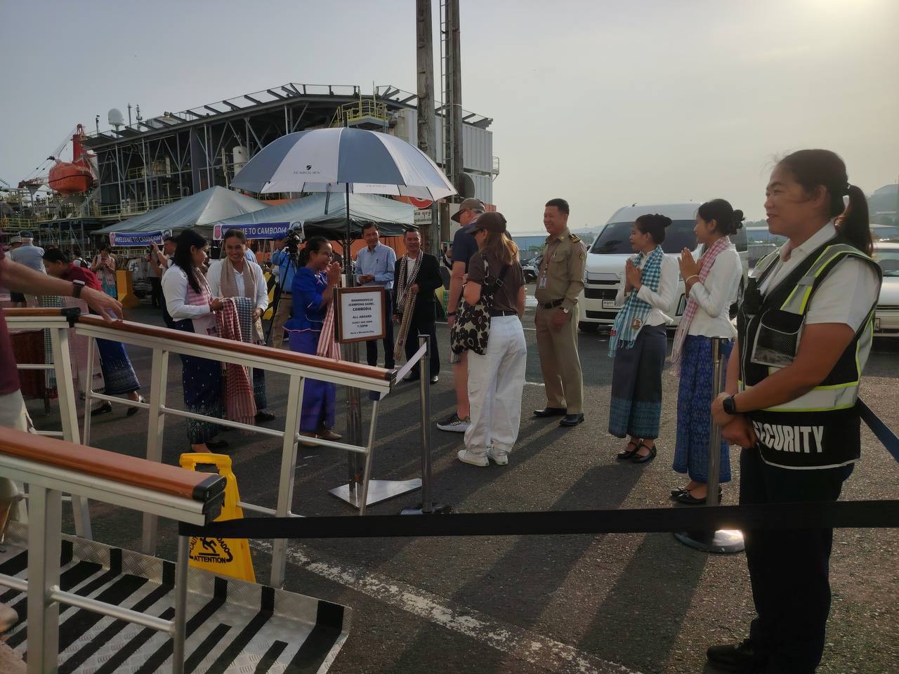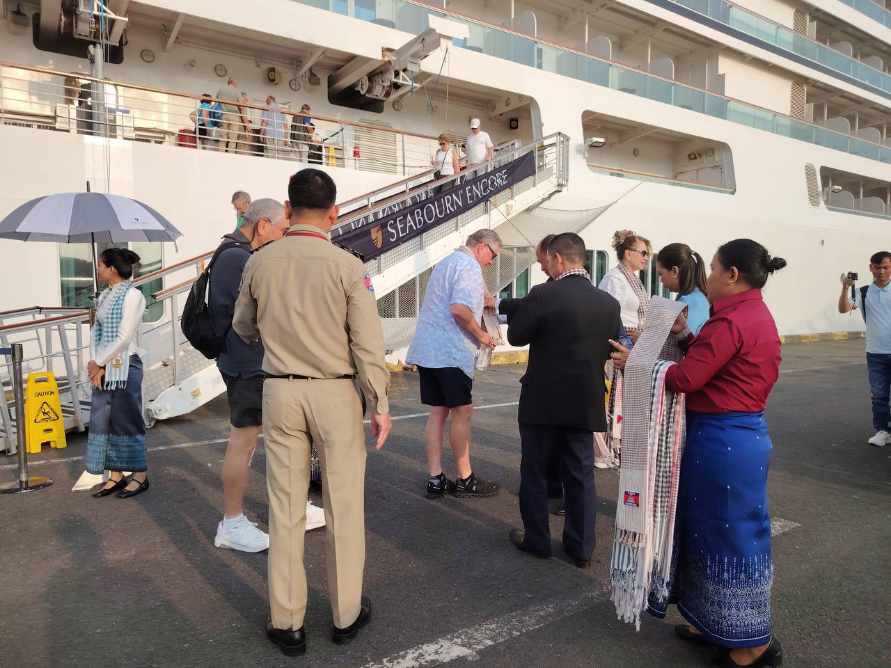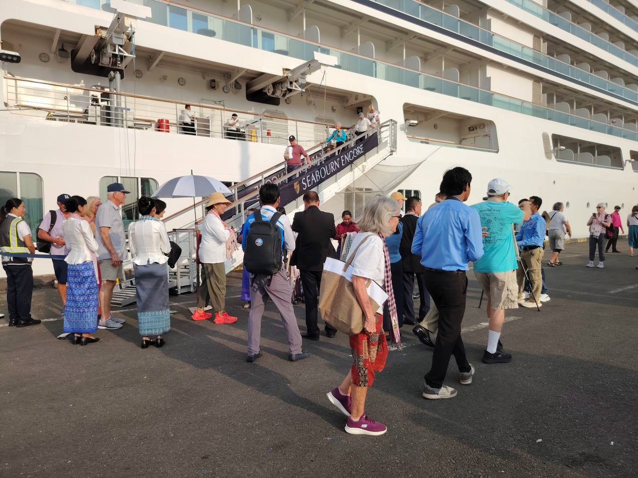 នាវាទេសចរណ៍ខាងលើបានចូលចតដោយសុវត្ថិភាព ក្រោមការចង្អុលបង្ហាញរបស់លោក ហួត ហាក់ រដ្ឋមន្ត្រីក្រសួងទេសចរណ៍។ មន្ទីរទេសចរណ៍ខេត្តព្រះសីហនុ បានរៀបចំពិធីទទួលស្វាគមន៍យ៉ាងកក់ក្តៅ ដល់ភ្ញៀវទេសចរ និងនាវិកចំនួន ៤១៥នាក់ ដែលមាន ៤៣សញ្ជាតិ បានចុះពីនាវាទេសចរណ៍ SEABOURN ENCORE សញ្ជាតិ BAHAMAS មានបណ្ដោយប្រវែង២១០.៥០ម៉ែត្រ និងទទឹងប្រវែង២៨ម៉ែត្រ ជម្រៅ៦ម៉ែត្រ។