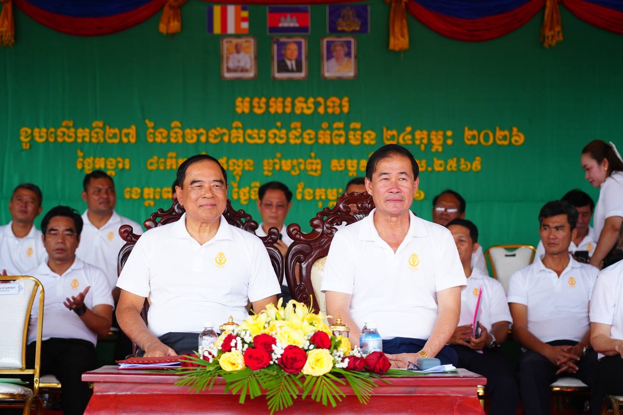 (ពោធិ៍សាត់)៖ លោកបណ្ឌិត លី ធុជ ទេសរដ្ឋមន្រ្តី និងជាអនុប្រធានទី១ អាជ្ញាធរមីន តំណាងដ៏ខ្ពង់ខ្ពស់របស់ សម្តេចបវរធិបតី ហ៊ុន ម៉ាណែត នាយករដ្ឋមន្រ្តីនៃកម្ពុជា និងជាប្រធានអាជ្ញាធរមីន នាថ្ងៃទី២៤ ខែកុម្ភៈ ឆ្នាំ២០២៦ បានអញ្ជើញជាអធិបតី ក្នុងខួបលើកទី២៧ នៃទិវាជាតិយល់ដឹងអំពីមីន ២៤ កុម្ភៈ ក្រោមប្រធានបទ «ចូលរួមទាំងអស់គ្នា ដើម្បីជនភៀសសឹក និងសហគមន៍មានសុវត្ថិភាព»។