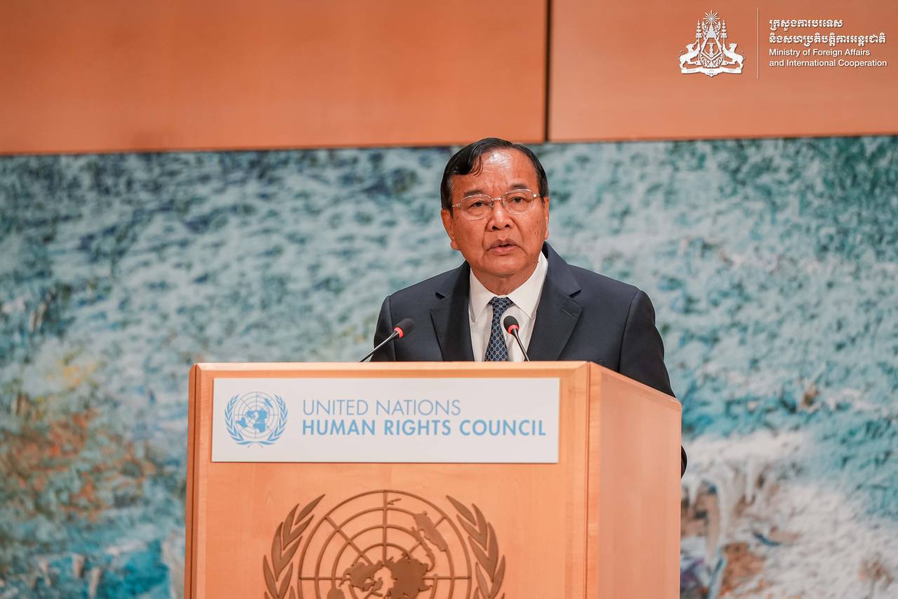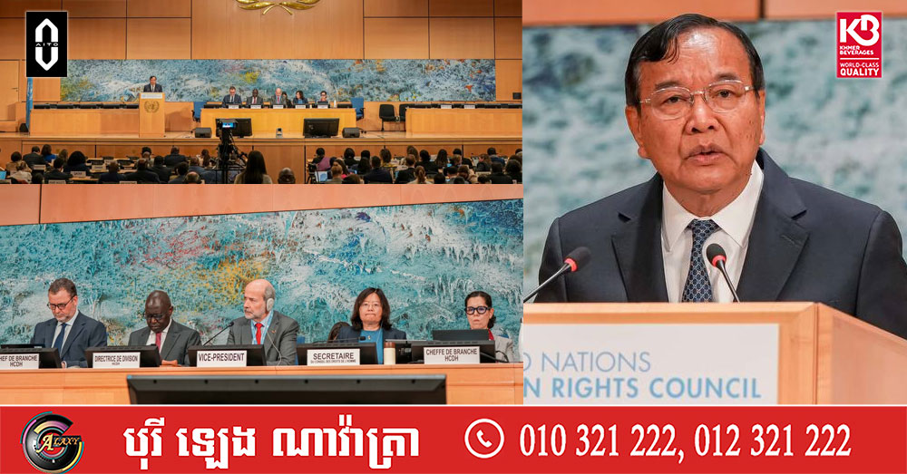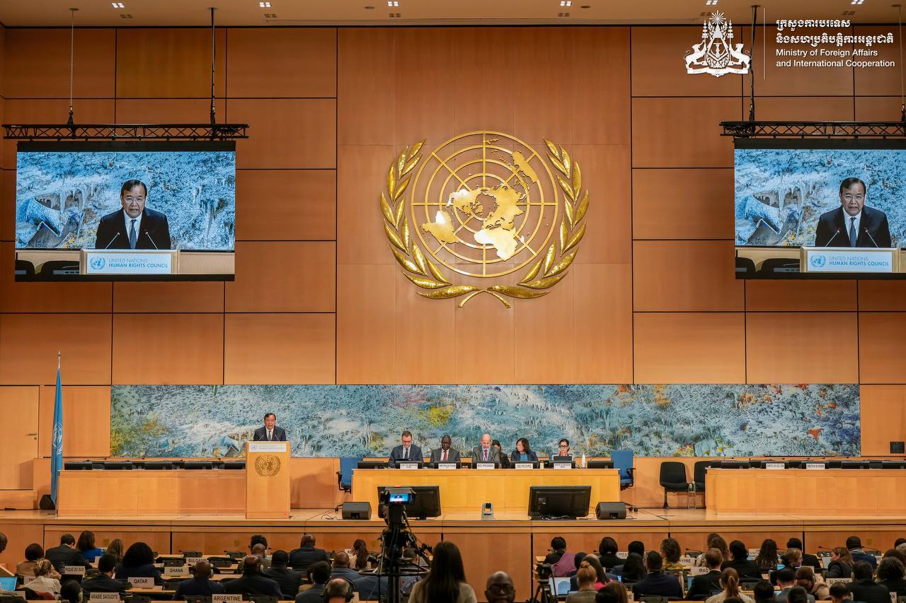 (ស្វីស)៖ នៅថ្ងៃទី២៤ ខែកុម្ភៈ ឆ្នាំ២០២៥ លោកឧបនាយករដ្ឋមន្ត្រី ប្រាក់ សុខុន រដ្ឋមន្ត្រីការបរទេស និងសហប្រតិបត្តិការអន្តរជាតិ បានអញ្ជើញឡើងថ្លែងបទអន្តរាគមន៍ ក្នុងសម័យប្រជុំ លើកទី៦១ នៃក្រុមប្រឹក្សាសិទ្ធិមនុស្ស របស់អង្គការសហប្រជាជាតិ នៅទីក្រុងហ្សឺណែវ ប្រទេសស្វីស៕