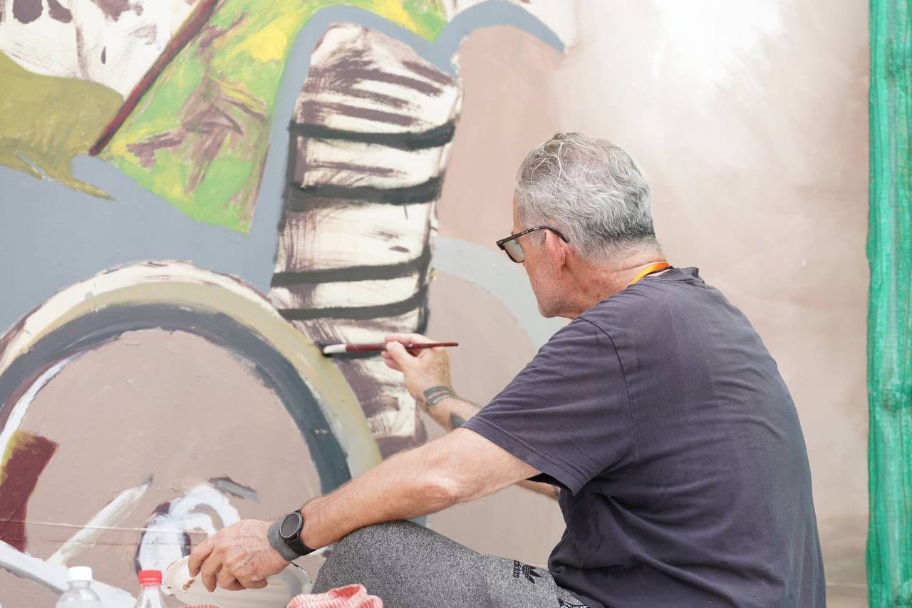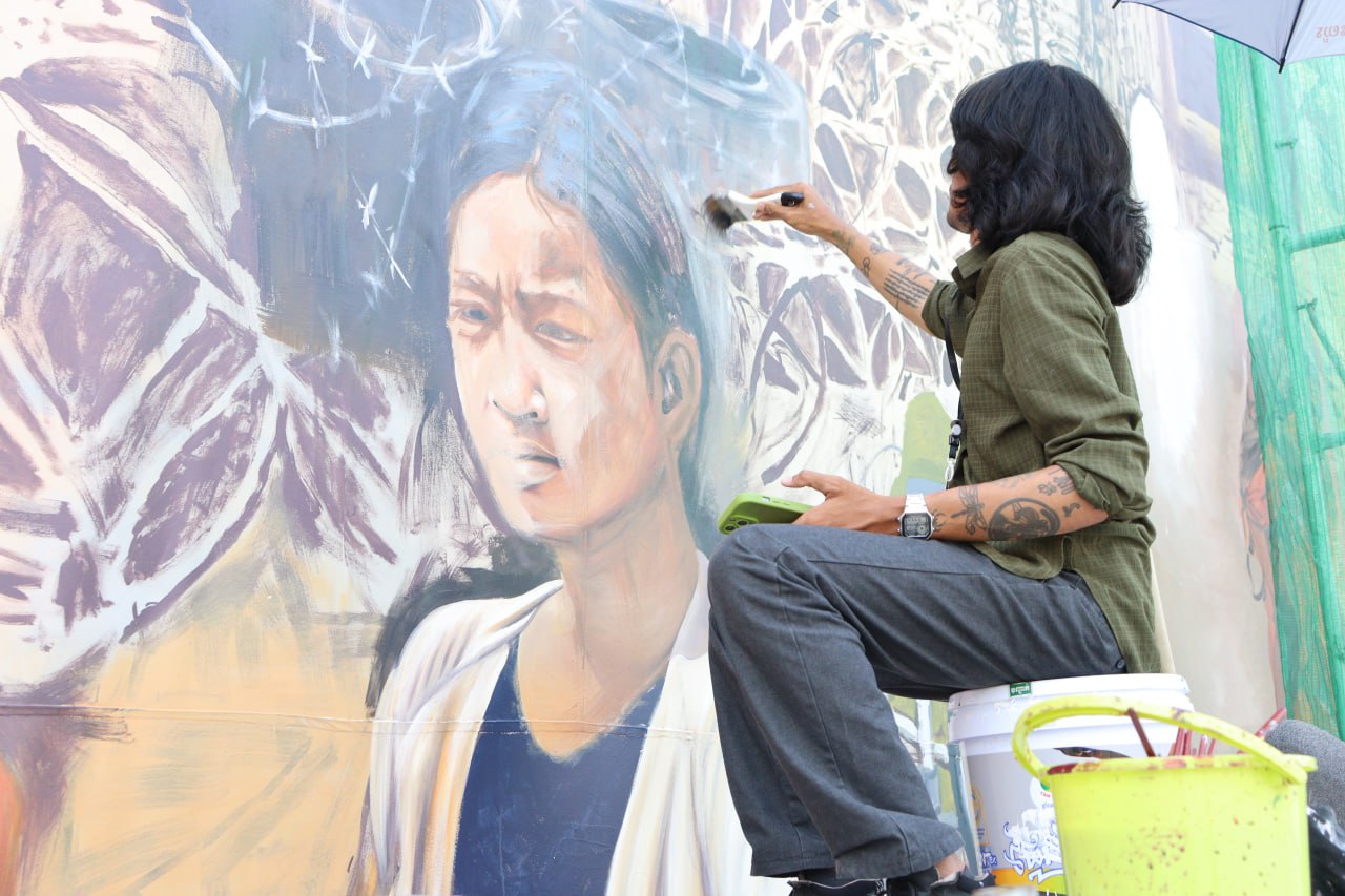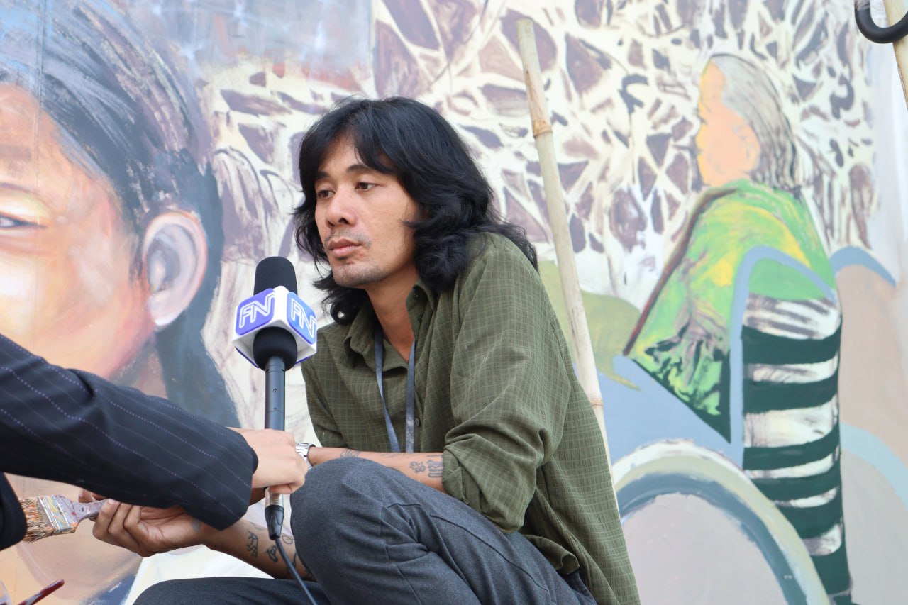 ជាវិចិត្រករមួយរូបរស់នៅរាធានីភ្នំពេញ លោក អ៊ុំ លាង បានមកគូរដោយស្ម័គ្រចិត្តនៅទីនេះ រយៈពេល ៤ថ្ងៃមកហើយ។ រូបស្រ្តីមានផ្ទៃពោះ កំពុងអោបកូនតូចប្រុសស្រី ២នាក់ ក្នុងទឹកមុខភ័យរន្ធត់ គឺជារូបគំនូរដែលលោកកំពុងគូរដោយអារម្មណ៍សោគសង្រេង ដោយនឹករលឹកពីភាពភ័យខ្លាចដែលស្រ្តី និងកុមារបានជួបប្រទះ។